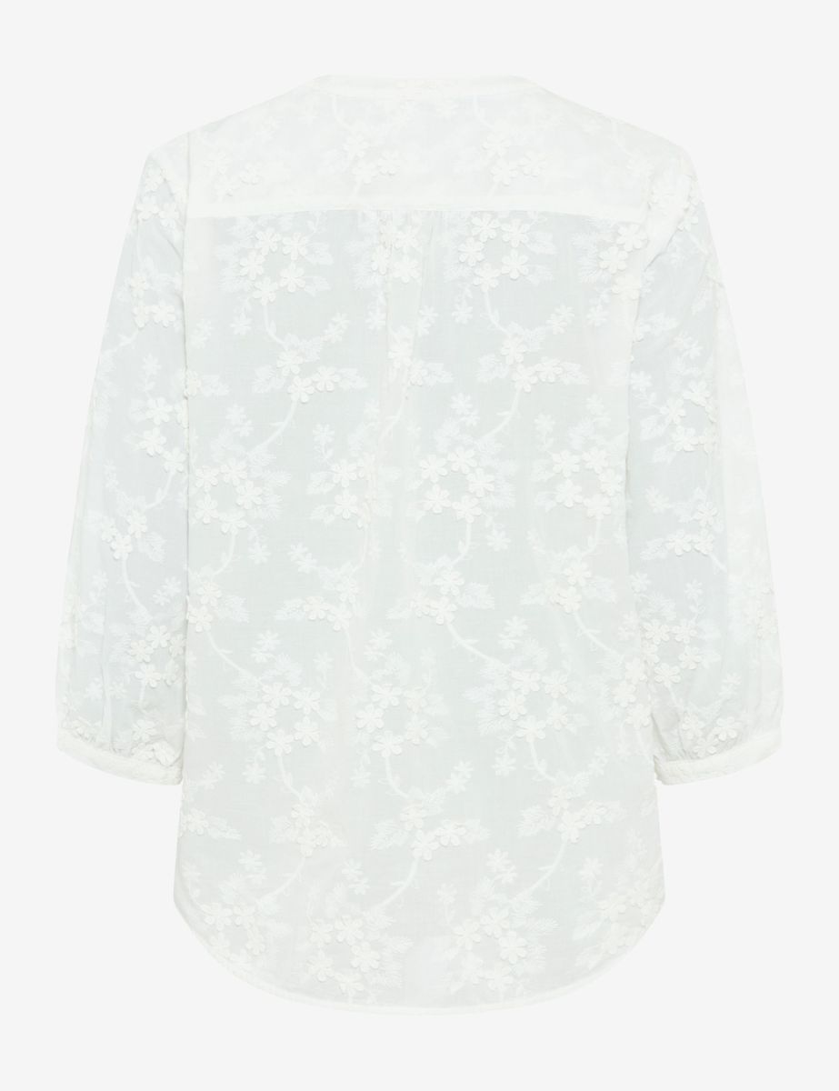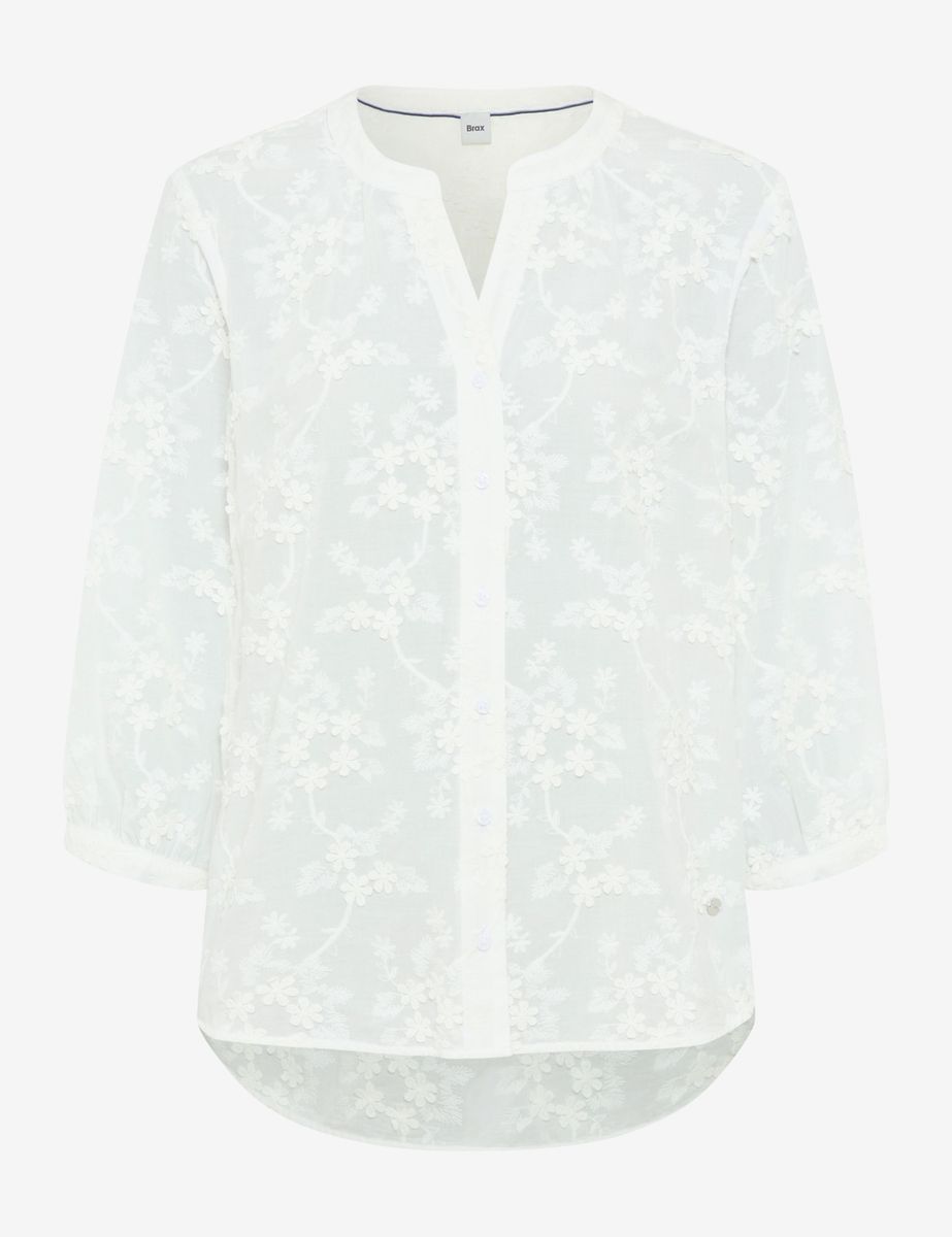 Sommerlich, modern und feminin: Diese Attribute beschreiben die Bluse im Style Velia perfekt und machen sie zu einem Highlight für die warme Jahreszeit. Die gerade Silhouette mit leicht gerundetem Saum und kleinem V-Neck ist die Basis für den harmonischen Look. Verspielte Raffungen am Kragen und Ärmelbündchen auf 3/4-Länge setzen charmante Akzente. Optisch dominiert der tonale 3D-Embroidery Blumenstick, der das feminine Gesamtbild gekonnt abrundet. Reine Baumwolle macht die Bluse auch haptisch zum Erlebnis. Das Naturmaterial garantiert einen hohen Tragekomfort, da es hautsympathisch, atmungsaktiv und angenehm weich im Griff ist.