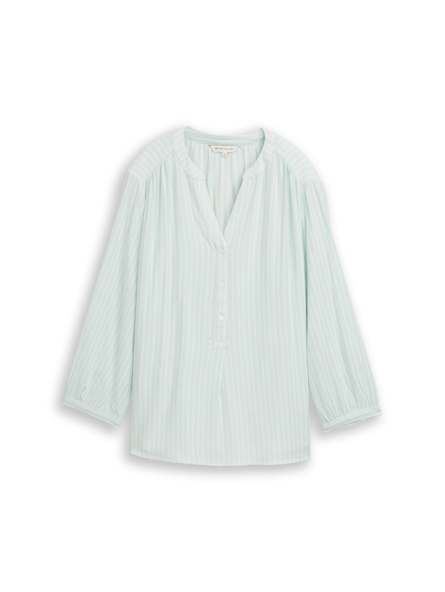 Gestreifte Dobby Bluse aus Viskose mit 3/4-Arm und leichten Raffungen an den Schultern