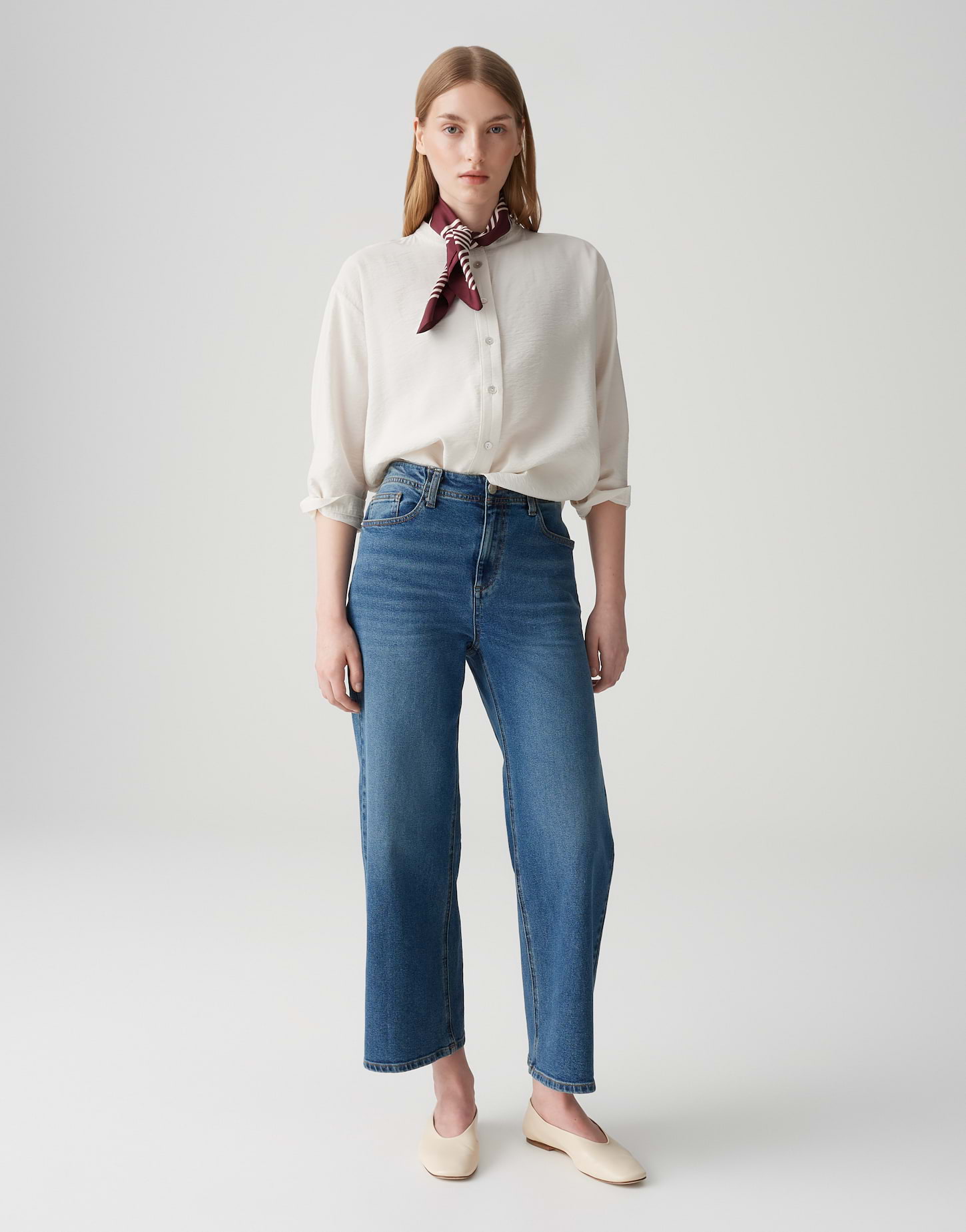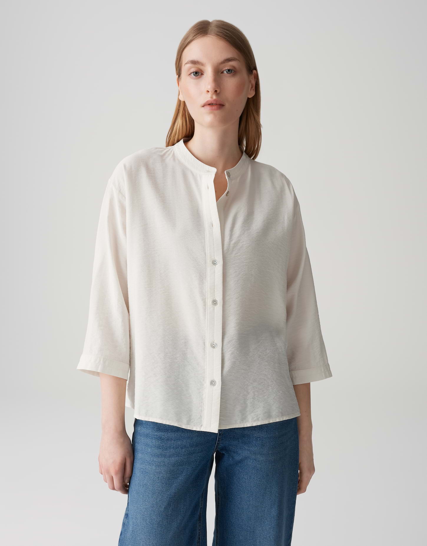 weite Passform, gerader Schnitt, überschnittene Schulter mit 3/4 Arm, Rundhalsausschnitt, Rückenlänge ca. 61 cm bei Größe 36, Farbe natural glaze: Model Größe 172 cm – trägt Größe 36, Farbe coal blue: Model Größe 177 cm – trägt Größe 36, Webware, enthält nichttextile Teile tierischen Ursprungs, Crash Optik, leichter Stoff, leichte Transparenz im hellen Farbton, fließender Fall, Knopfleiste, Schlitze in den Seiten, Perlmuttknöpfe, Passe im Rücken