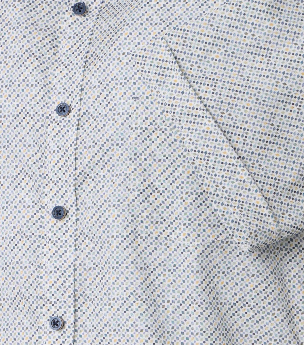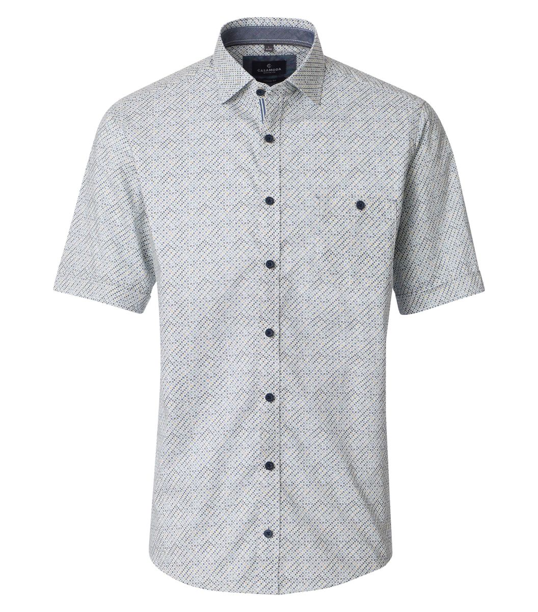 Das Freizeithemd für Herren überzeugt durch eine normale Passform, die für hohen Tragekomfort steht und Bewegungsfreiheit ermöglicht. Gefertigt aus reiner Baumwolle bietet es ein angenehmes Gefühl auf der Haut, das besonders bei langen Tagen oder in der Freizeit geschätzt wird. Der moderne Druck, bei dem das Muster direkt auf die Stoffoberfläche aufgebracht wurde, sorgt für einen modischen Akzent und hebt dieses Hemd besonders hervor. Mit seinem klassischen Kent-Kragen wirkt das Modell stets gepflegt undpasst zu vielen Looks, ob leger mit einer Jeans, modern mit einer Chino-Hose oder smart unter einem leichten Blazer. Dank des Kurzarms eignet sich das Freizeithemd optimal für warme Tage und bietet dabei stets ein angenehmes Klima. Die praktische Brusttasche rundet das Design funktional ab und bietet Platz für kleine Utensilien oder Notizen. Ob im Alltag, bei Treffen mit Freunden oder zu informellen geschäftlichen Anlässen – dieses Hemd ist vielseitig einsetzbar und unterstützt Sie zuverlässig im Alltag.