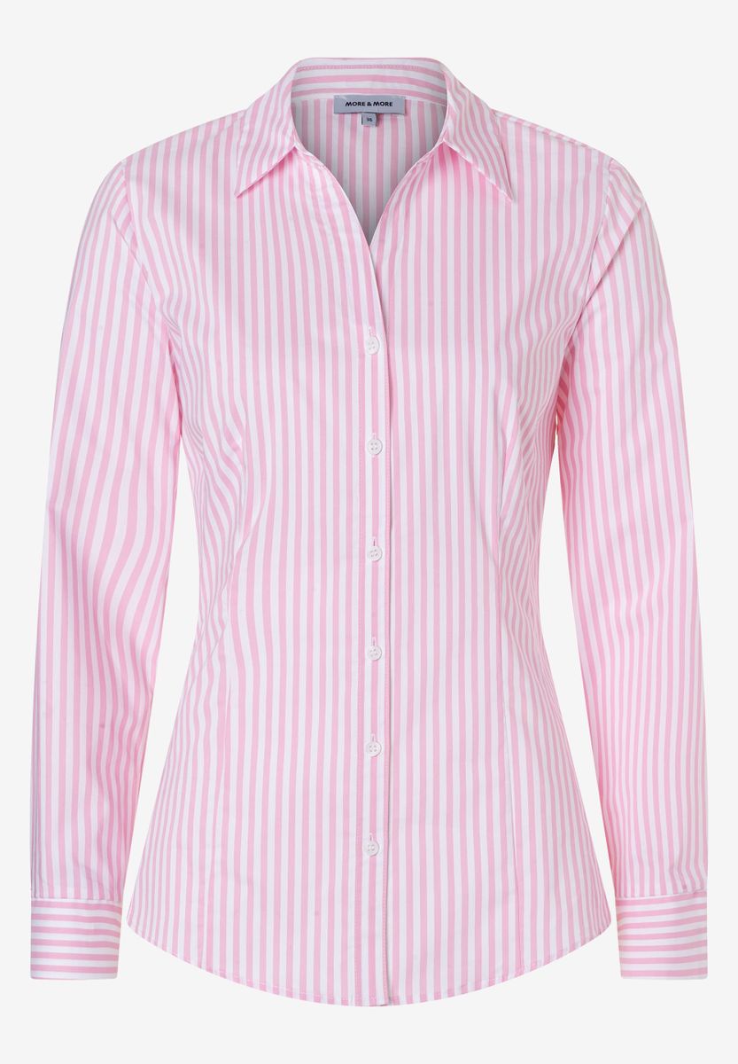 Die taillierte Hemdbluse von MORE & MORE mit 2-farbigem Streifenmuster ist die perfekte Ergänzung zum klassischen Businessanzug. Sie kann aber genauso gut zur lässigen Jeans oder sportiven Chino gestylt werden und sorgt für einen klassischen, zeitlosen Look.