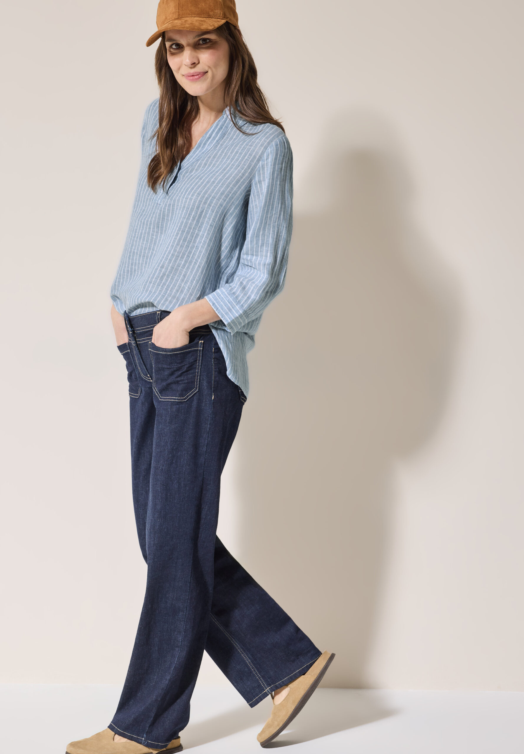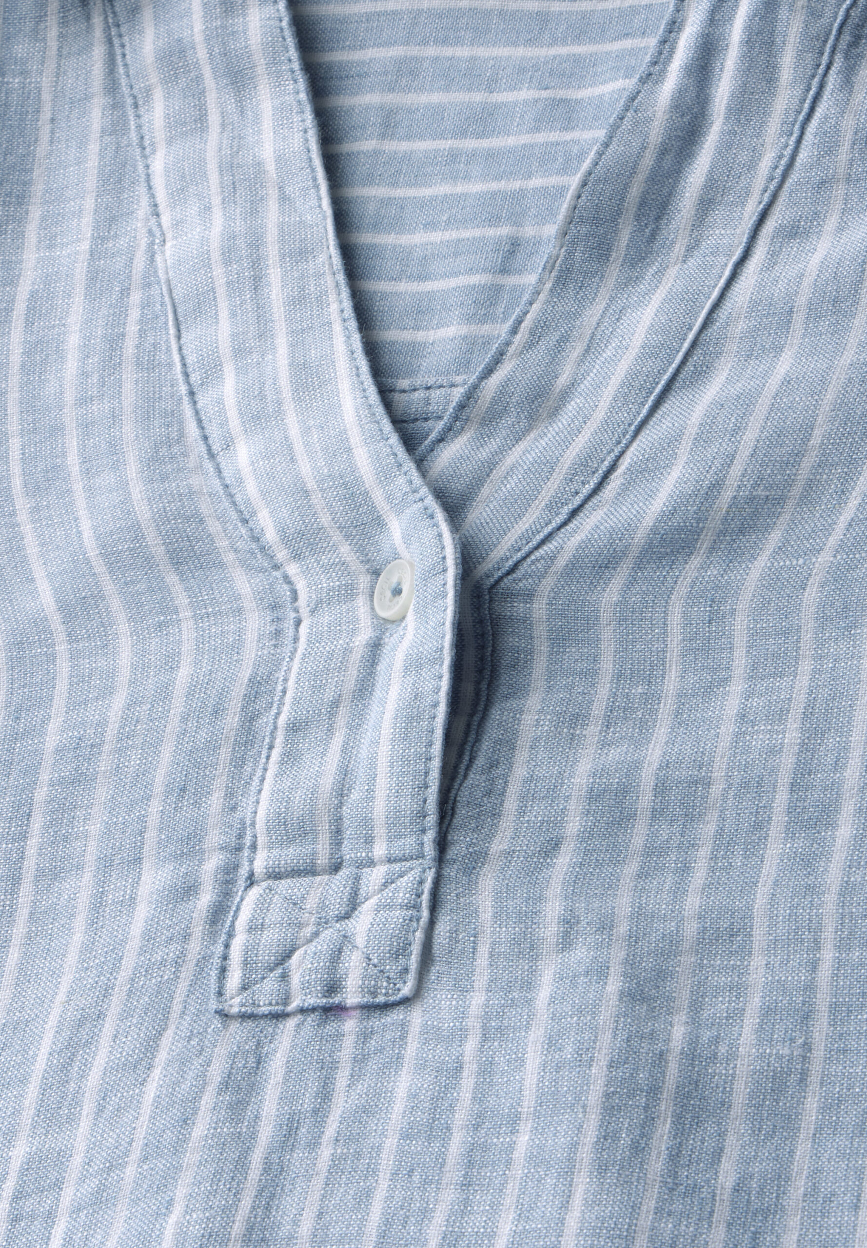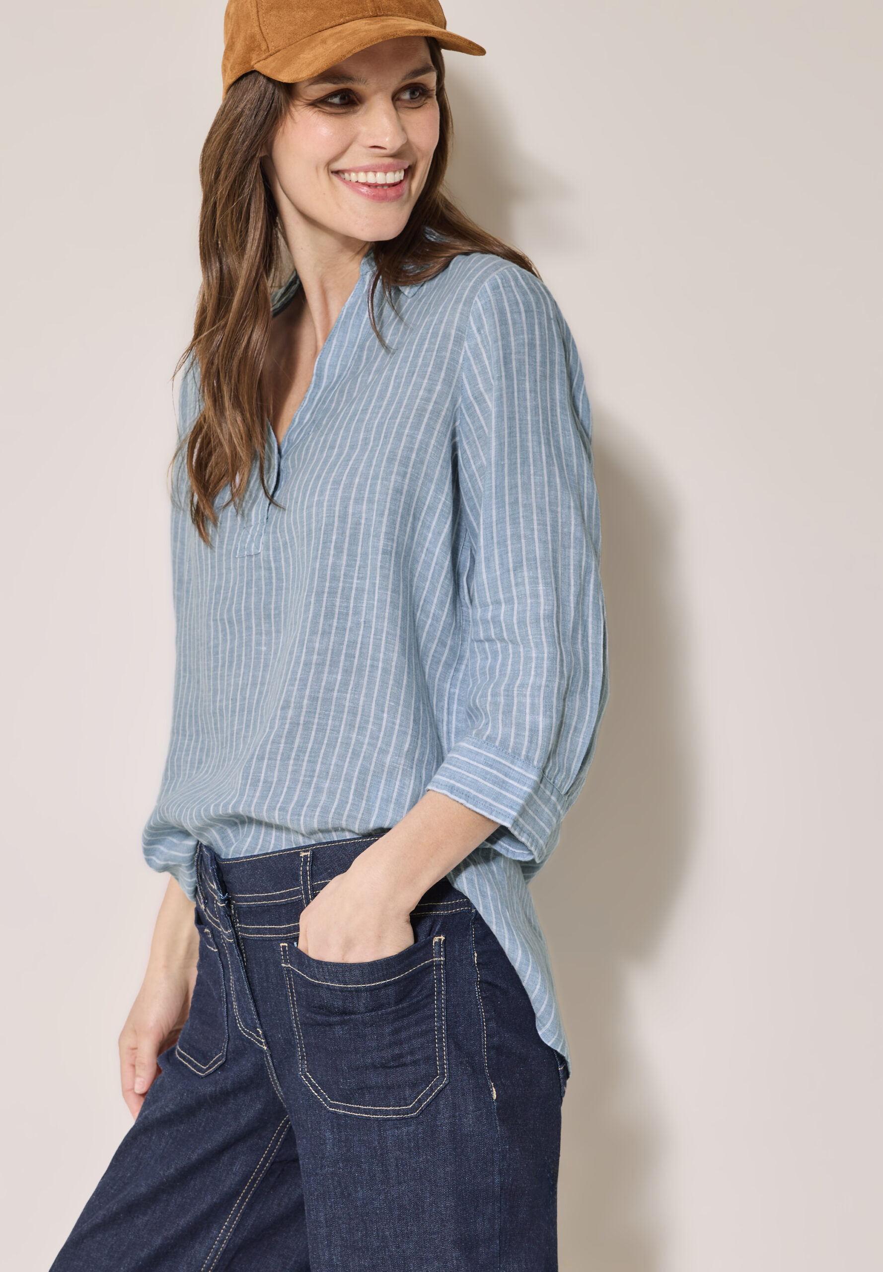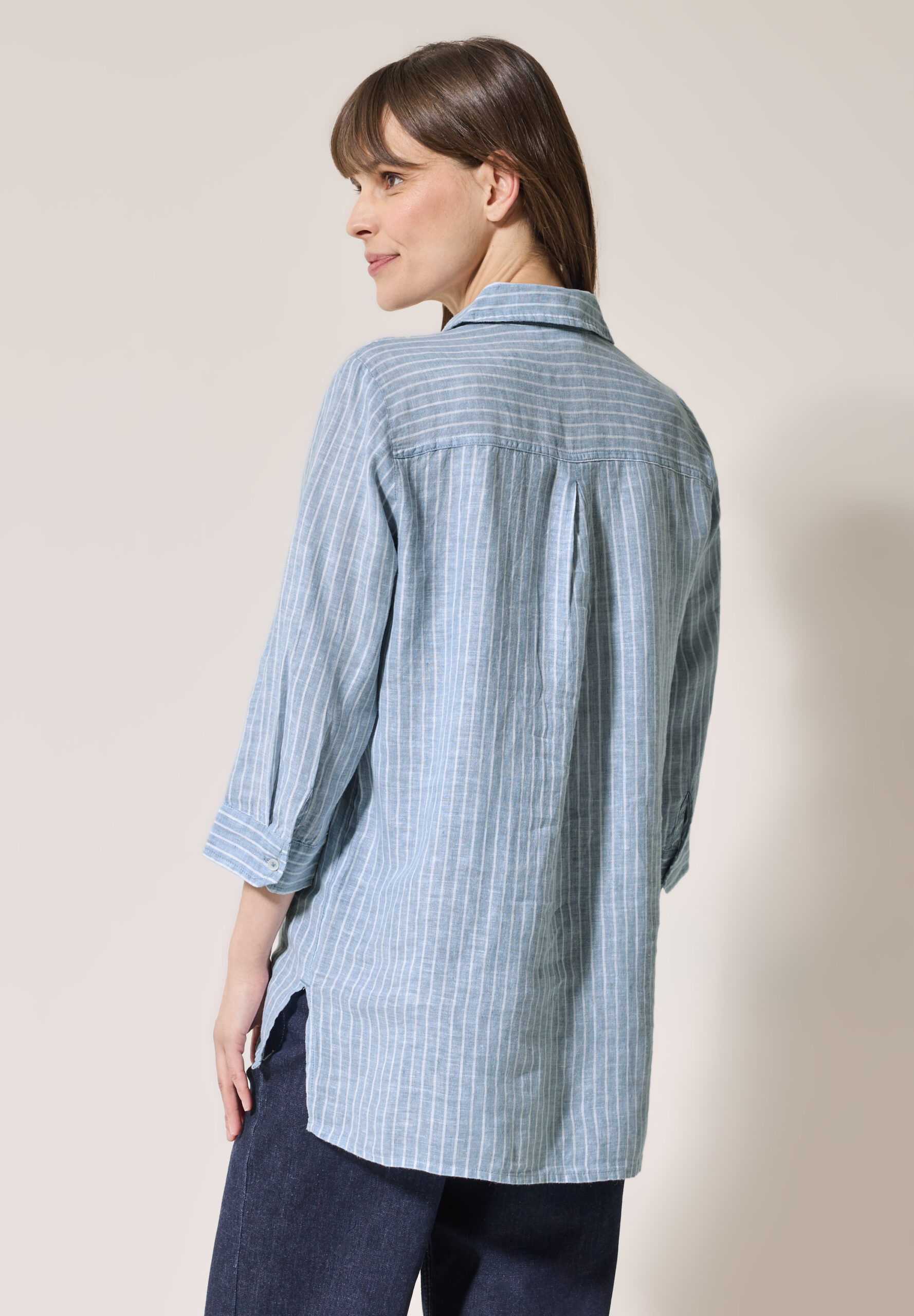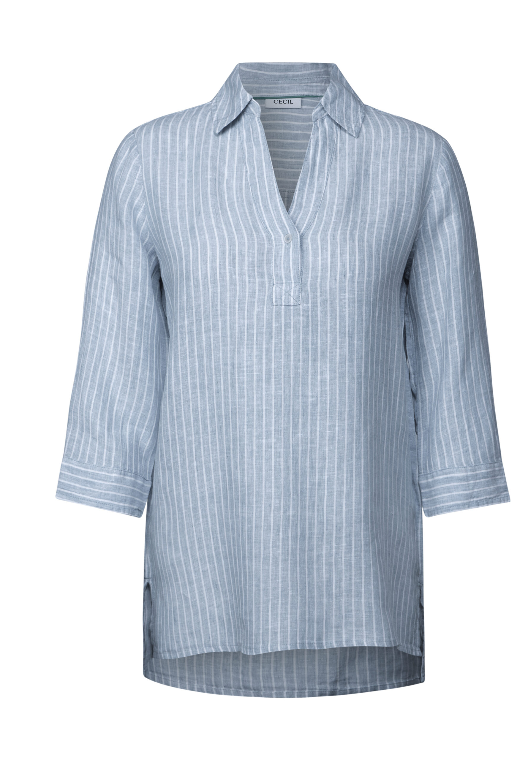 Diese lange Bluse von CECIL für Damen kombiniert einen klassischen Hemdkragen mit sommerlicher Leichtigkeit. Die 3/4-Ärmel und die seitlichen Schlitze sorgen für eine bequeme Passform. Die angenehme Leinenqualität macht sie zu einem perfekten Begleiter an warmen Tagen. Lange Bluse Hemdkragen 3/4-Arm Seitliche Schlitze Leichte Leinenqualität Material: 100% Leinen