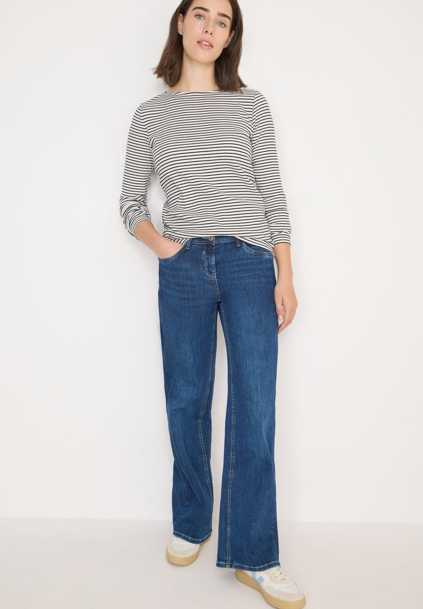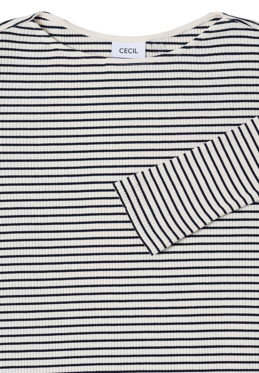 Im maritimen Look präsentiert sich dieses gestreifte Langarmshirt von CECIL für Damen. Die feine Rippstruktur schmeichelt der Figur, während der U-Boot-Ausschnitt und die langen Ärmel für eine feminine Note sorgen. Ein bequemes Shirt für deinen lässigen Alltag. Damenshirt Streifenmuster Figurschmeichelnde Rippstruktur Langarm U-Boot-Ausschnitt Material: 95% Baumwolle, 5% Elasthan