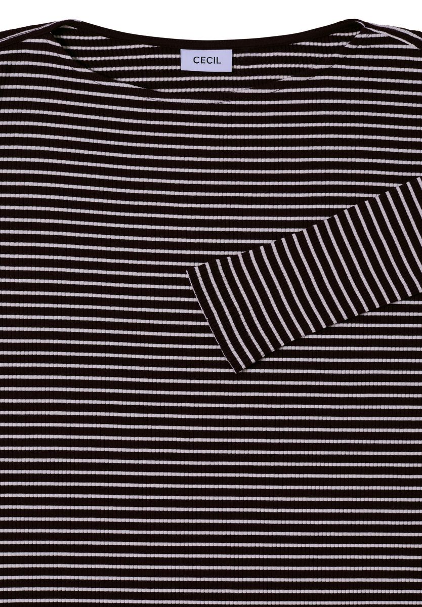 Im maritimen Look präsentiert sich dieses gestreifte Langarmshirt von CECIL für Damen. Die feine Rippstruktur schmeichelt der Figur, während der U-Boot-Ausschnitt und die langen Ärmel für eine feminine Note sorgen. Ein bequemes Shirt für deinen lässigen Alltag. Damenshirt Streifenmuster Figurschmeichelnde Rippstruktur Langarm U-Boot-Ausschnitt Material: 95% Baumwolle, 5% Elasthan