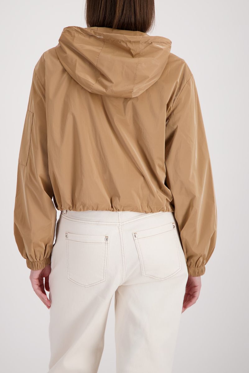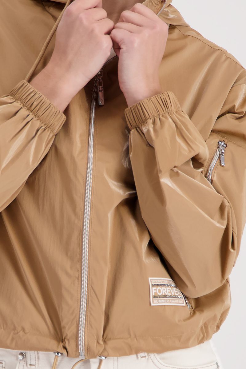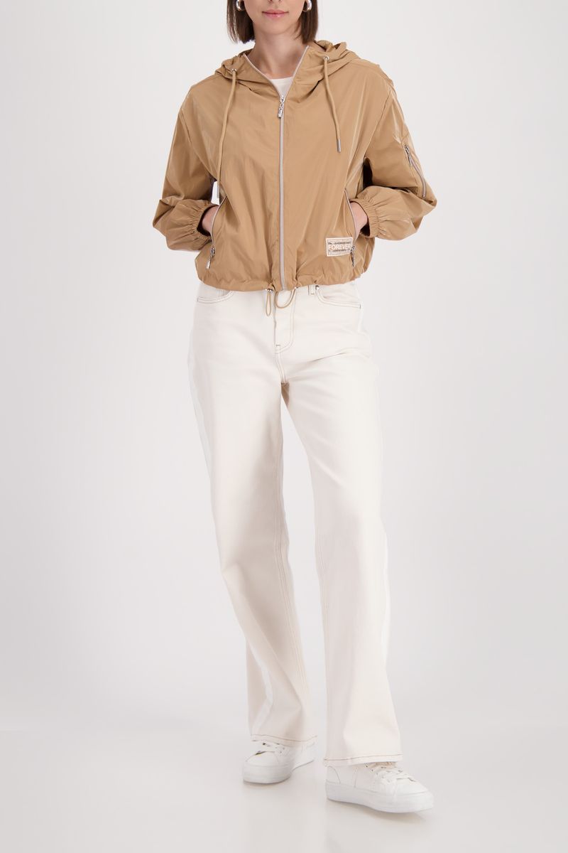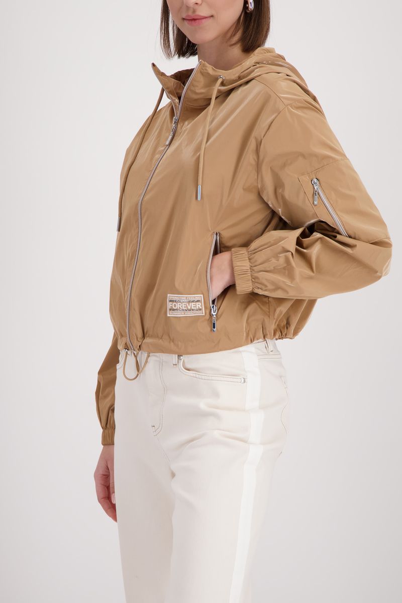 Stilvolle Outdoor Jacke mit Kapuze, praktischen Reißverschlusstaschen und elastischen Ärmelbündchen für modernen Komfort.