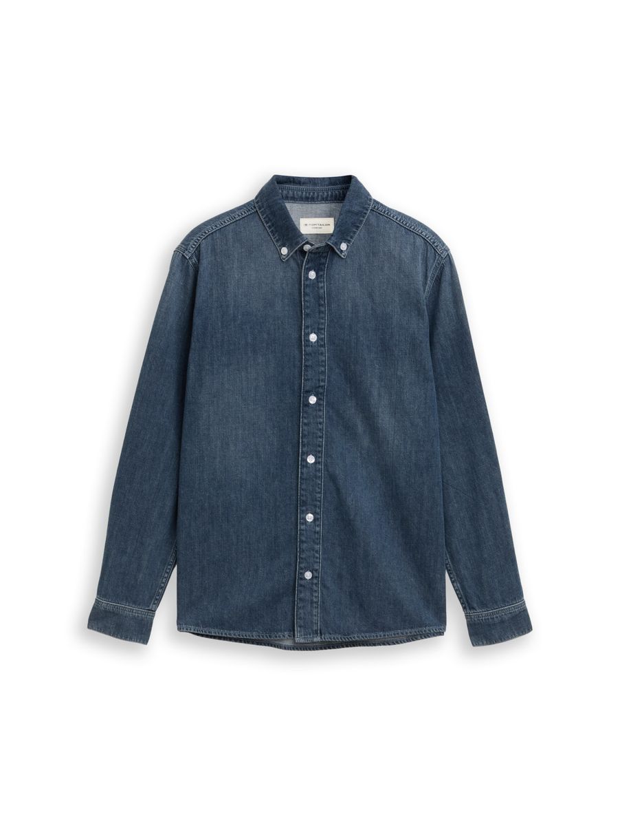 Basic Jeanshemd aus Baumwolle mit Button-Down-Kragen und Knopfleiste