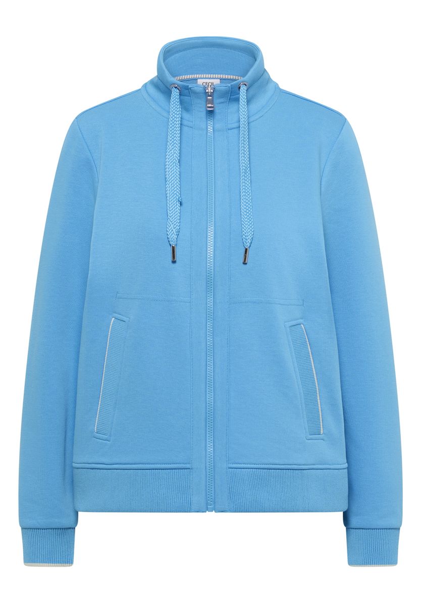 Diese Sweatjacke von CECIL für Damen überzeugt mit sportivem Design und bequemer Passform. Ein Stehkragen mit Tunnelzug, der Reißverschluss und seitliche Taschen machen sie zum idealen Begleiter für aktive Tage. Rippbündchen an Ärmeln und Saum sorgen für den perfekten Sitz und eine moderne Silhouette. Sweatjacke Casual Stehkragen Langarm Sportiv Material: 55% Baumwolle, 45% Polyester