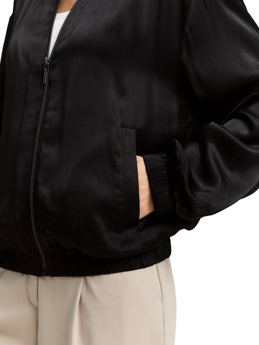 Modische oversize Satin Bomber Jacke mit Eingriffstaschen, Reißverschluss und überschnittenen Schultern für eine bequeme Passform.