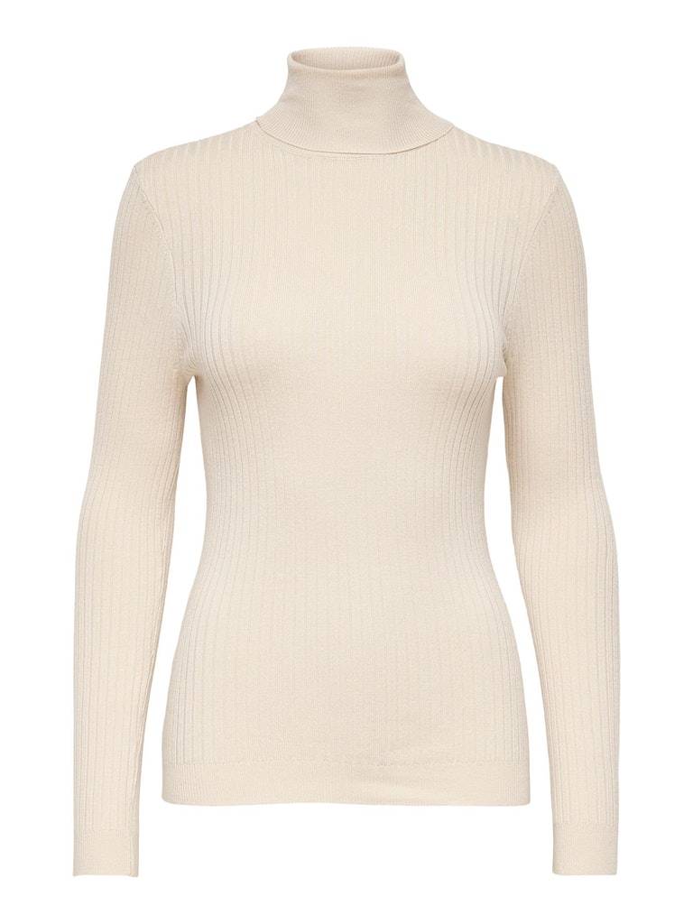 – Strickpullover- Rollkragen- Eine einfarbige und eine gestreifte Ausführung- Länge: 58 cm in Größe M- Das Model trägt Größe S