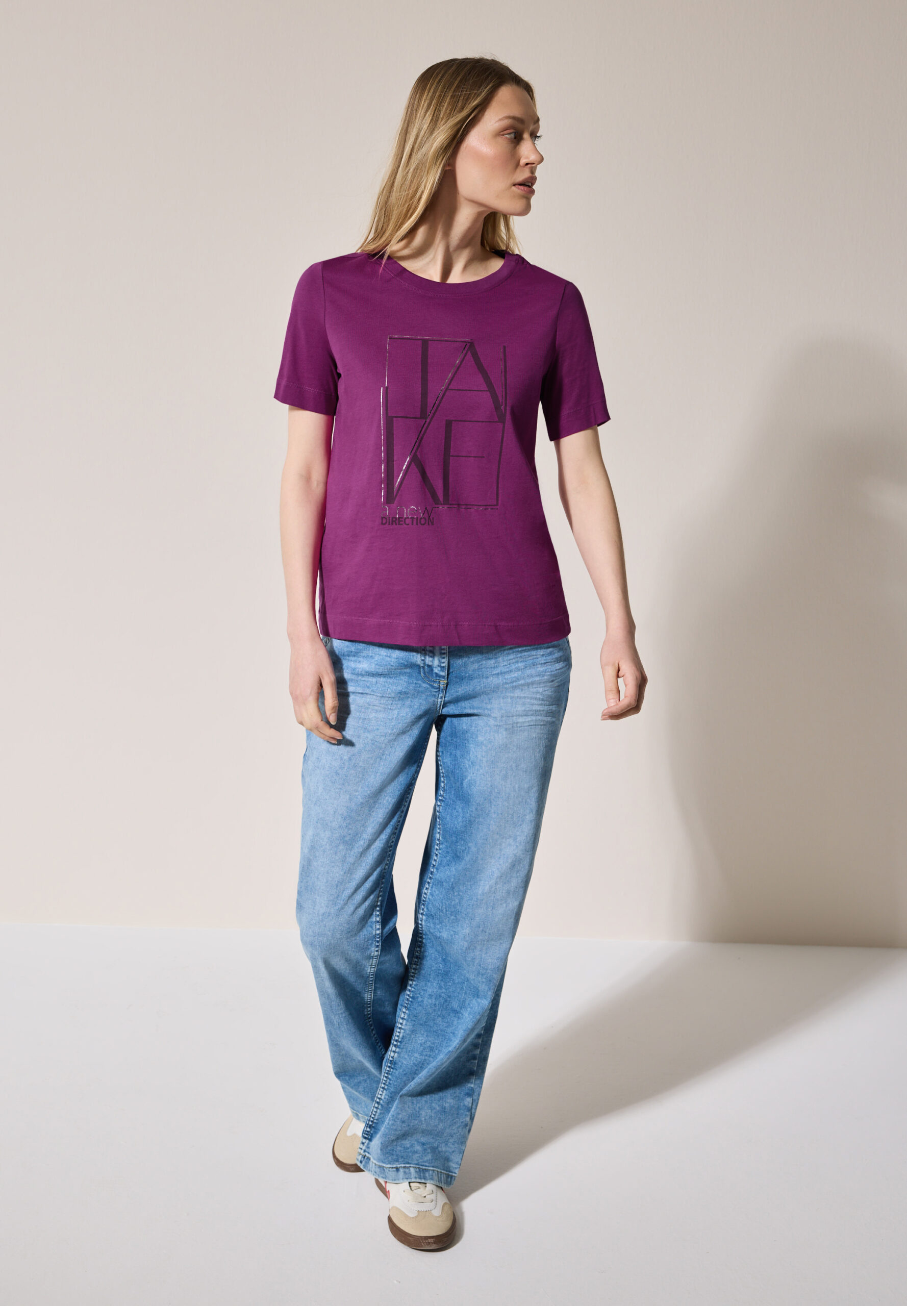 Dieses T-Shirt von CECIL für Damen setzt mit seinem schimmernden Foliendetail-Artwork modische Akzente. Der Rundhalsausschnitt und die kurzen Ärmel machen es zum vielseitigen Allrounder. Die reine Baumwolle sorgt für hohen Tragekomfort. T-Shirt Rundhalsausschnitt Kurzarm Artwork mit schimmernden Foliendetails Reine Baumwolle Material: 100% Baumwolle