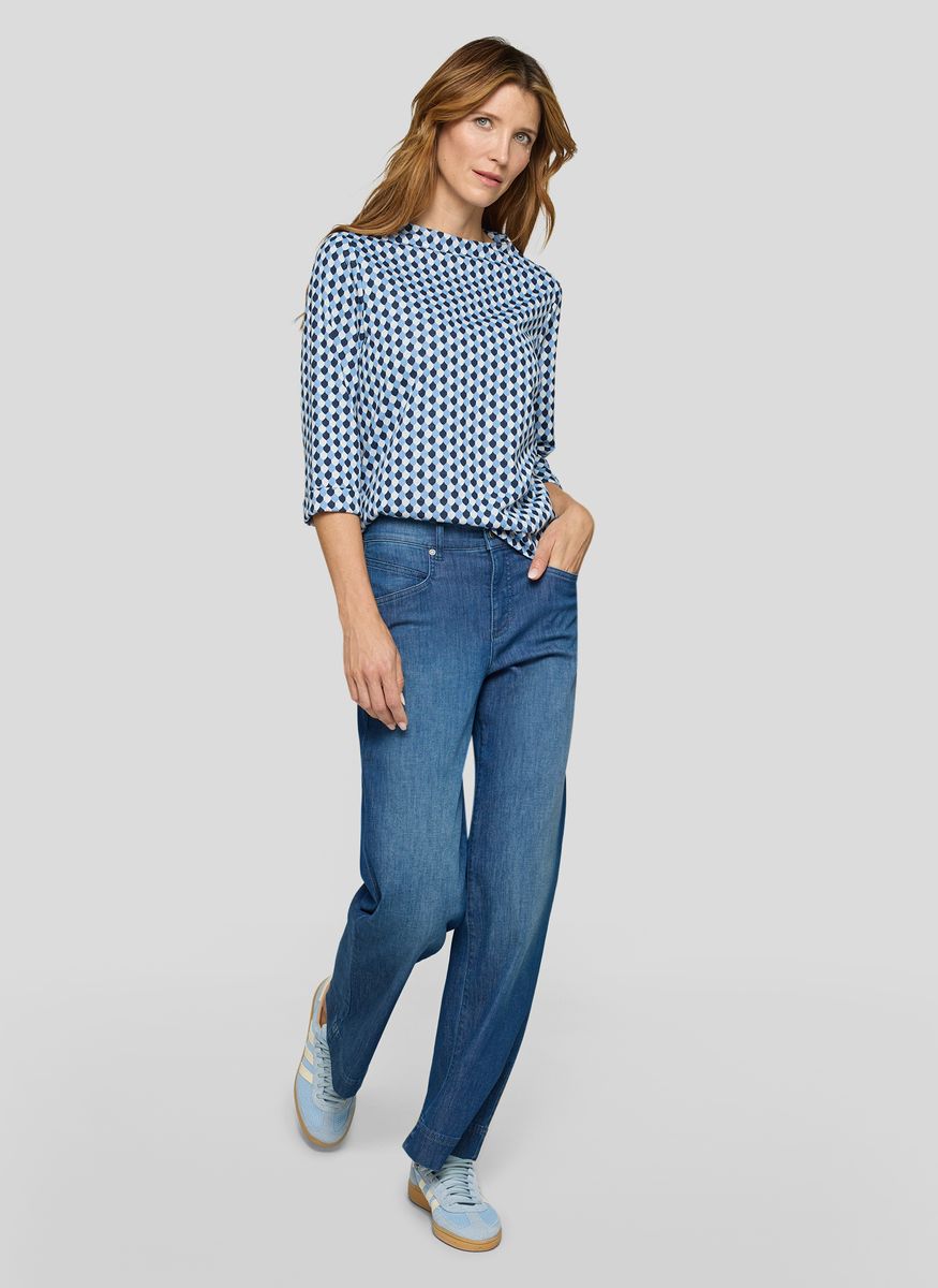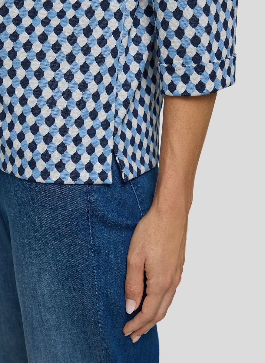 Ein grafischer Allover-Print verleiht diesem Shirt eine lebendige Ausstrahlung. Die plastisch wirkende Wabenstruktur sorgt dabei für eine interessante Haptik und einen modernen Look. Der elastische Materialmix mit Viskose-Anteil liegt angenehm weich auf der Haut und bietet Bewegungsfreiheit. Der gerade Schnitt und die 3/4-Ärmel machen das Modell zum vielseitigen Kombipartner für lässige und gepflegte Outfits.Grafischer Allover-Print. Struktur mit Wabenoptik. 3/4-lange Ärmel. Elastischer Viskose-Mix. Bequeme, gerade Form.