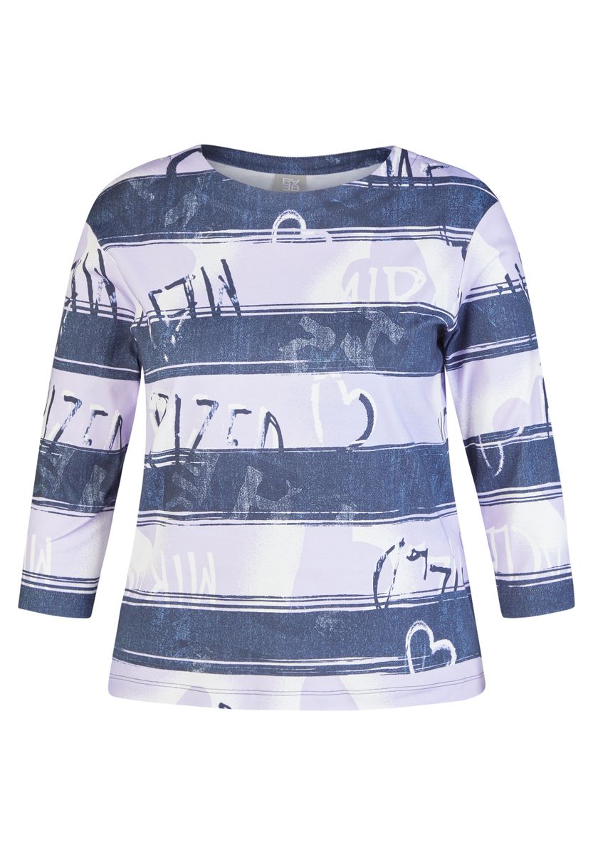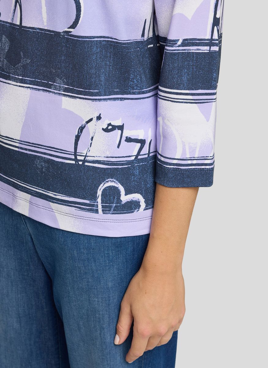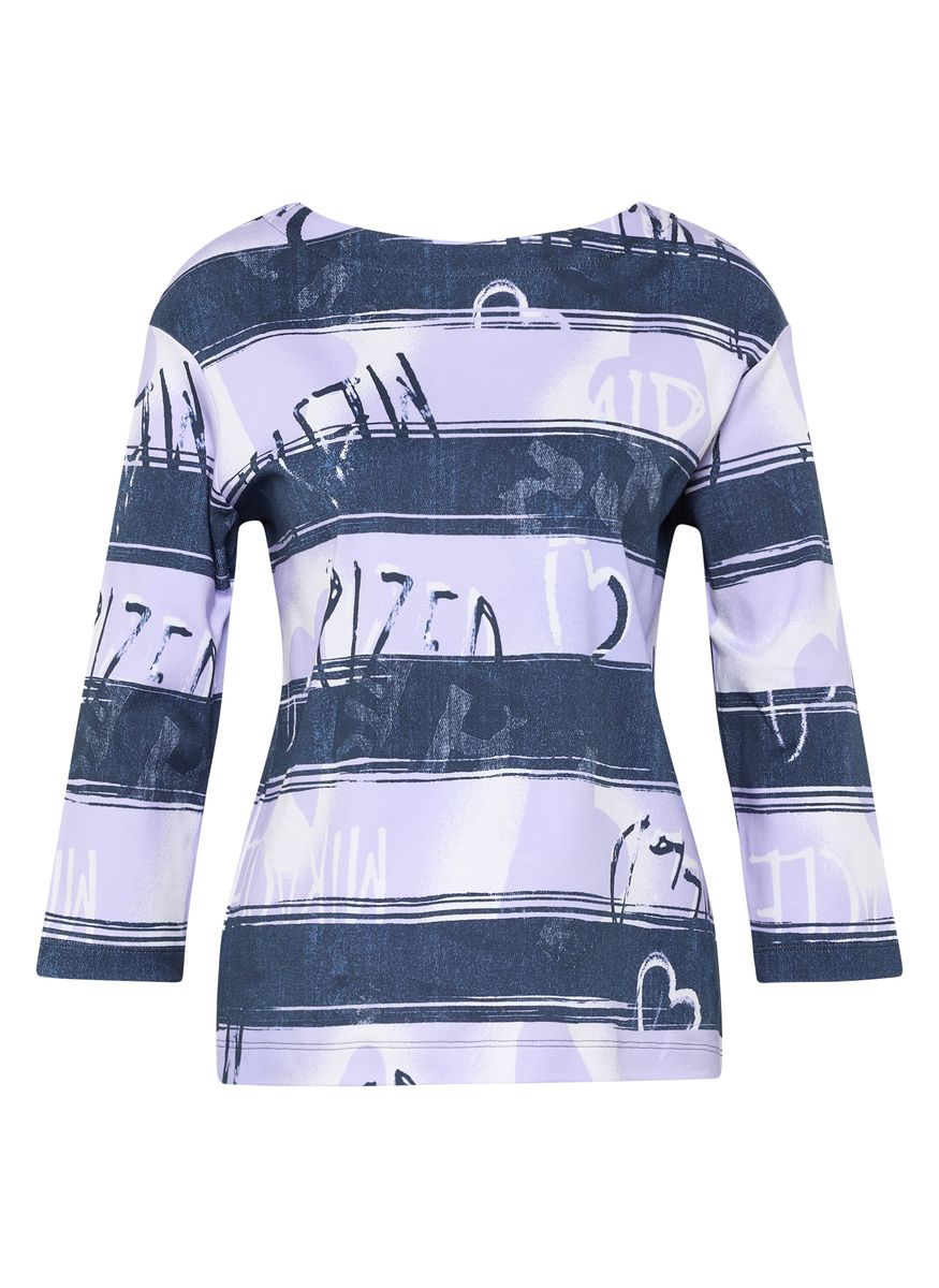 Dieses Shirt kombiniert sportive Lässigkeit mit einem ausdrucksstarken Design. Breite Querstreifen in gedeckten Tönen sorgen zusammen mit abstrakten Elementen für einen modernen Look. Der U-Boot-Ausschnitt und der 3/4-Arm unterstreichen die legere Silhouette, während das weiche Baumwollmaterial für ein angenehmes Tragegefühl sorgt. Perfekt zu Jeans oder unifarbenen Hosen. 3/4-lange Ärmel. Breite Streifen mit Print. Reine Baumwolle.