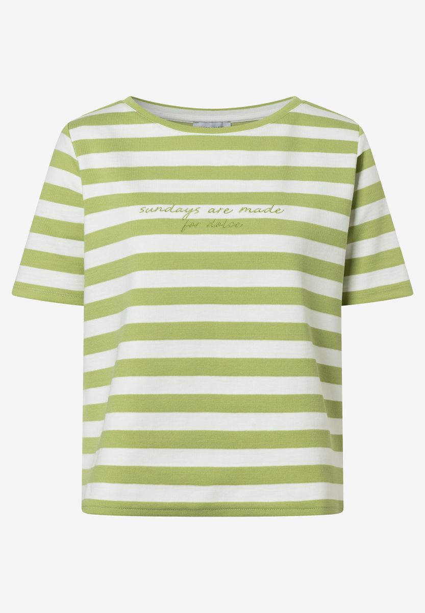 Fresh, lässig, ready for everyday: Dieses gestreifte T-Shirt von MORE & MORE bringt sofort gute Vibes in Ihren Look. Der entspannte Fit und die angenehme Qualität sorgen für maximalen Komfort, während das feine Statement-Detail auf der Brust einen modernen Twist setzt. Perfekt zu Jeans, Shorts oder Rock – ein unkompliziertes Essential mit Trendfaktor.