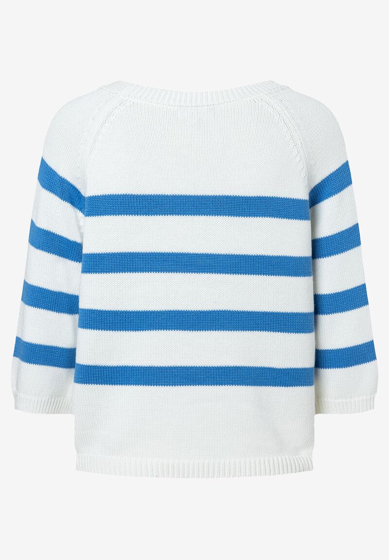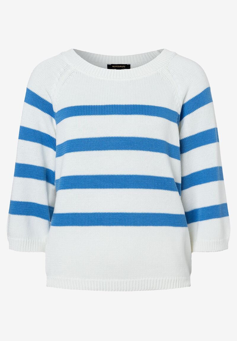 Der maritim inspirierte Streifenpullover von MORE & MORE mit 3/4 langen Ärmeln sieht zur lässigen Jeans oder klassischen Businesshose gleichermaßen gut aus kann aber auch zum fließenden Rock gestylt werden.
