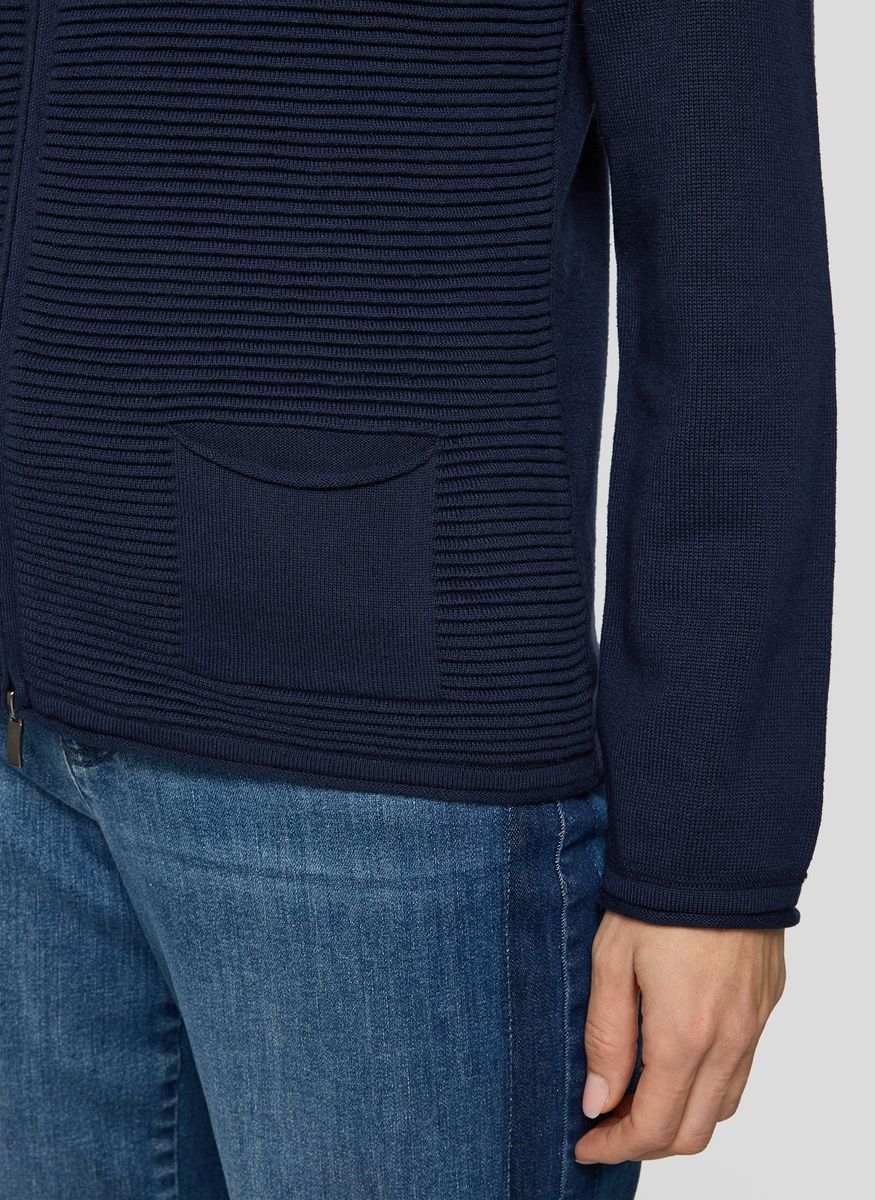 Diese Jacke überzeugt durch ihr raffiniertes Spiel mit Struktur: Die Vorderseite ist mit einer feinen Rippenstruktur gearbeitet, während Ärmel und Rückseite glatt gehalten sind. Der durchgehende Reißverschluss mit Ringzipper rundet den Look sportlich ab. Zwei aufgesetzte Taschen vorn bieten Platz für Kleinigkeiten. Die weiche Baumwollmischung liegt angenehm auf der Haut und sorgt für ein gutes Tragegefühl. Mit strukturiertem Frontbereich. Aufgesetzte Taschen vorn. Durchgehender Reißverschluss. Kleiner Stehkragen. Trageangenehme Baumwollmischung.
