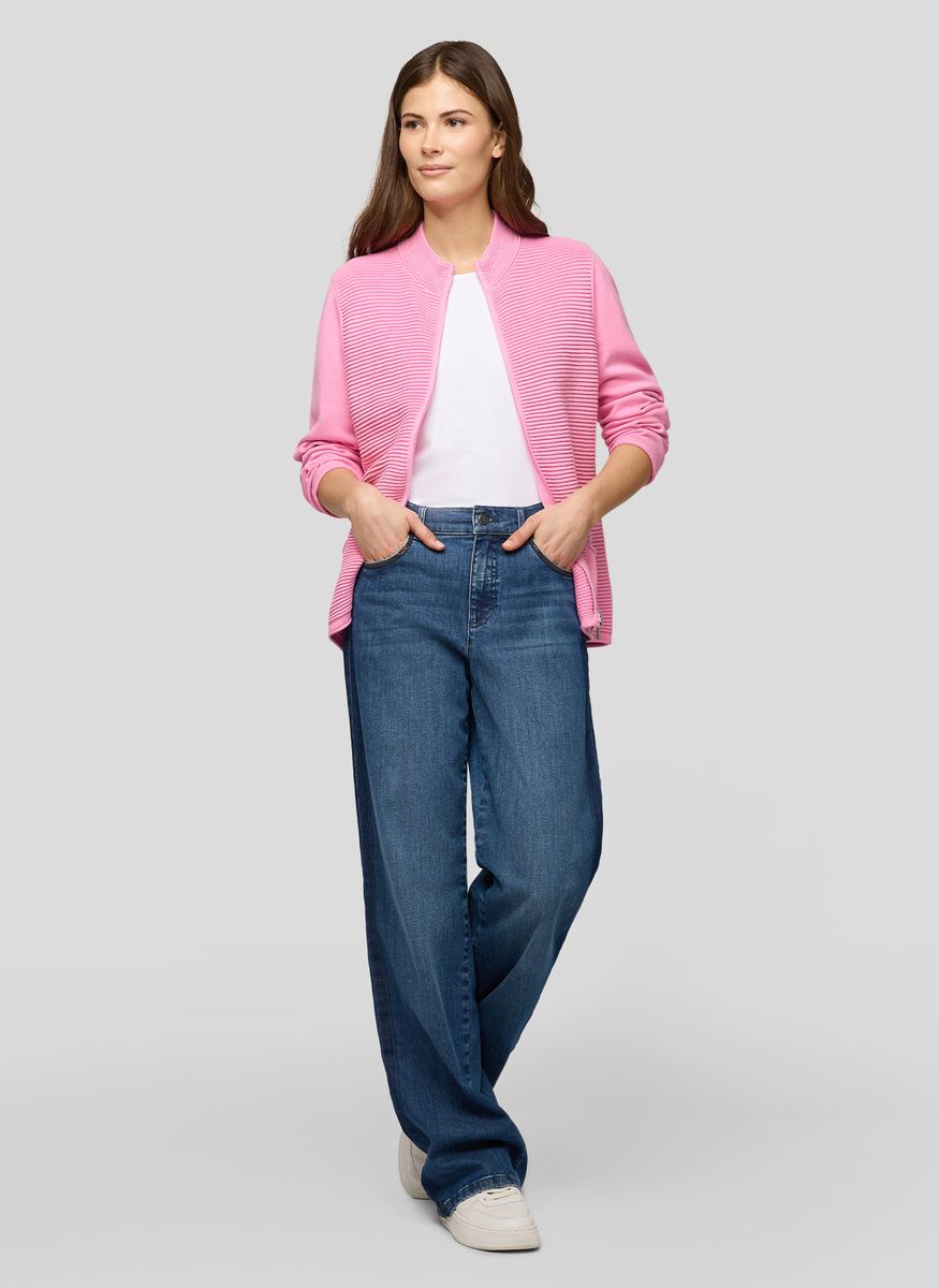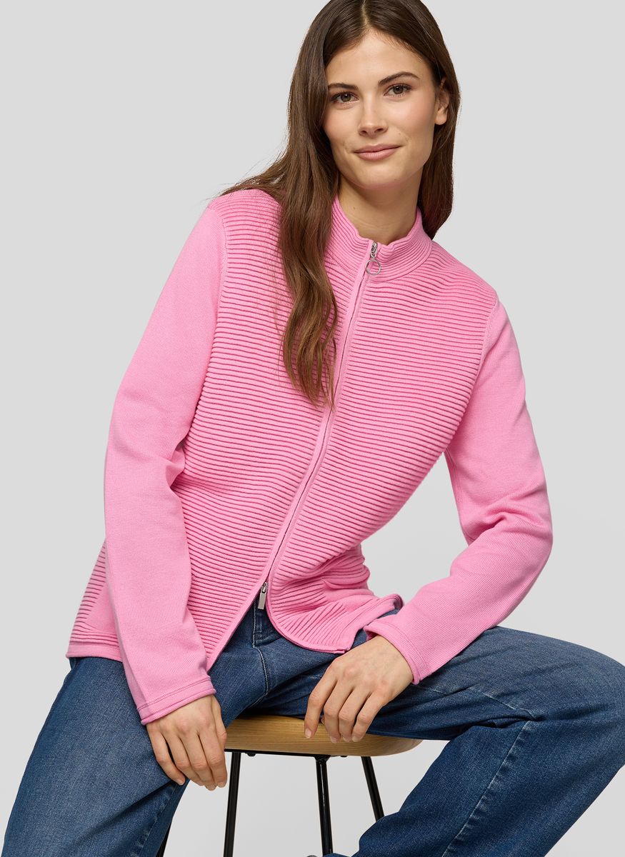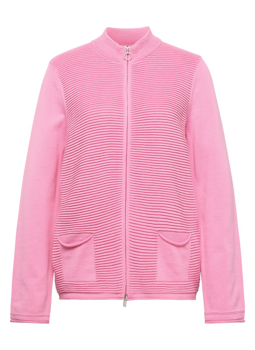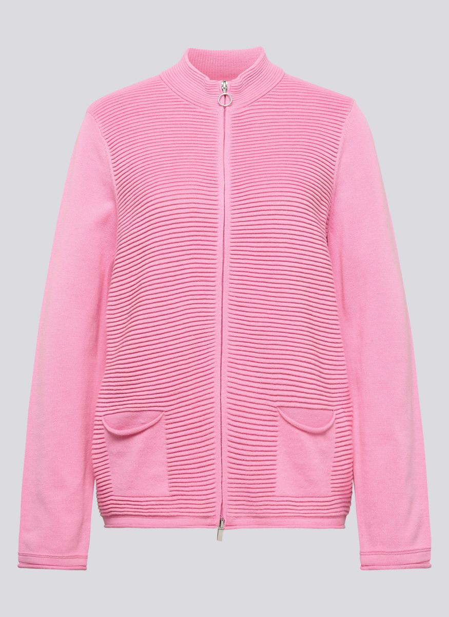 Diese Jacke überzeugt durch ihr raffiniertes Spiel mit Struktur: Die Vorderseite ist mit einer feinen Rippenstruktur gearbeitet, während Ärmel und Rückseite glatt gehalten sind. Der durchgehende Reißverschluss mit Ringzipper rundet den Look sportlich ab. Zwei aufgesetzte Taschen vorn bieten Platz für Kleinigkeiten. Die weiche Baumwollmischung liegt angenehm auf der Haut und sorgt für ein gutes Tragegefühl. Mit strukturiertem Frontbereich. Aufgesetzte Taschen vorn. Durchgehender Reißverschluss. Kleiner Stehkragen. Trageangenehme Baumwollmischung.
