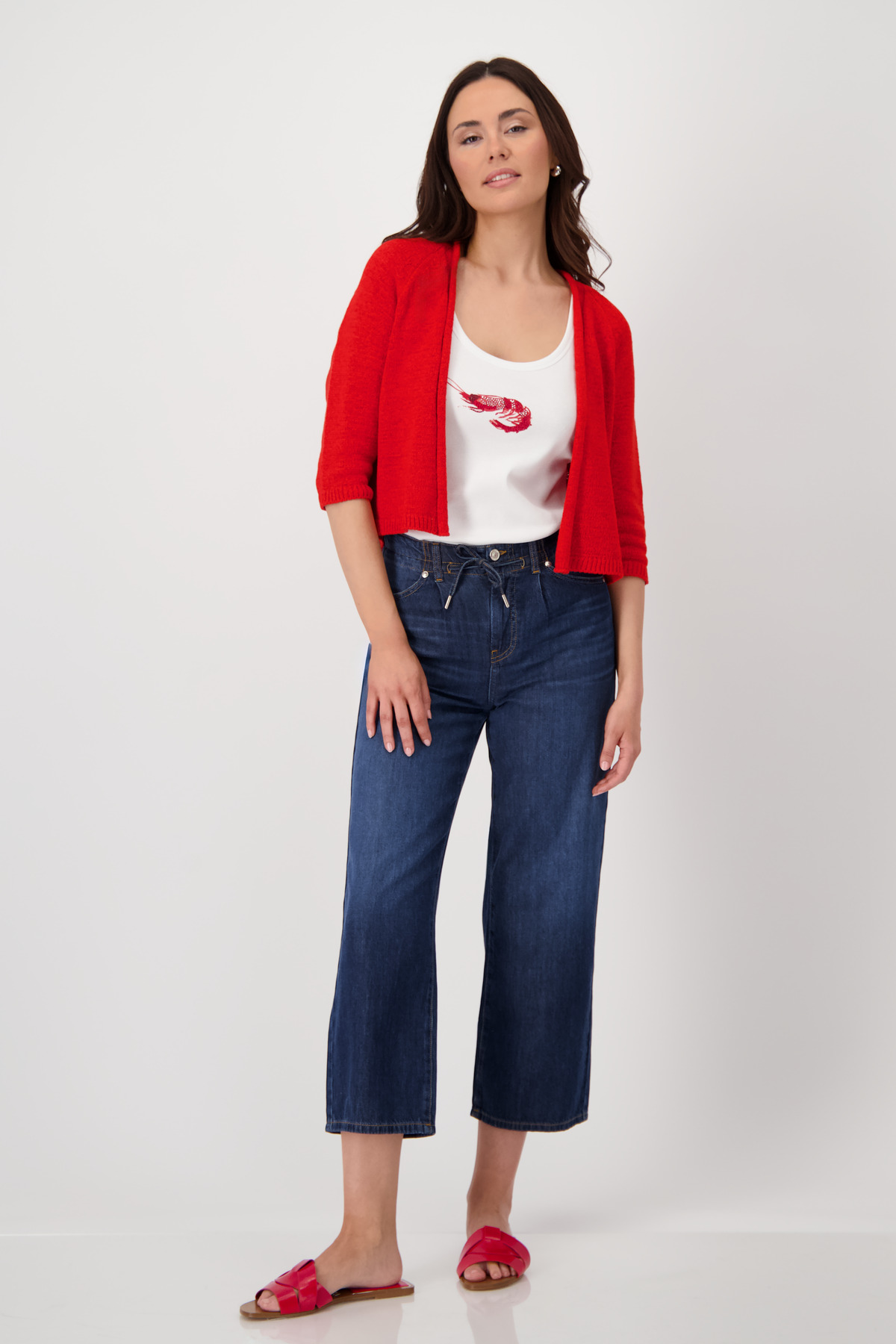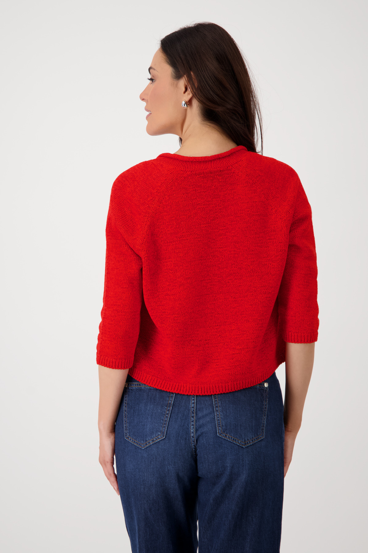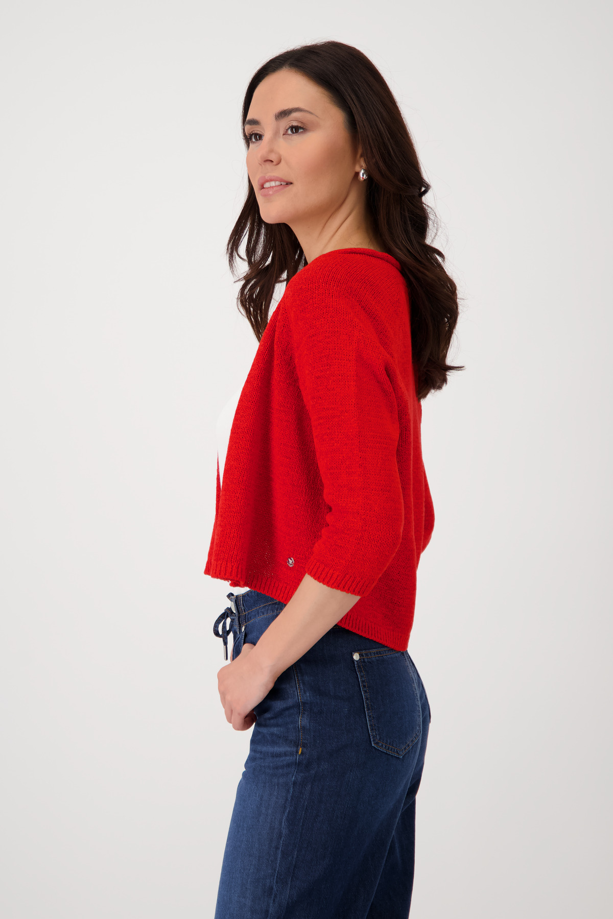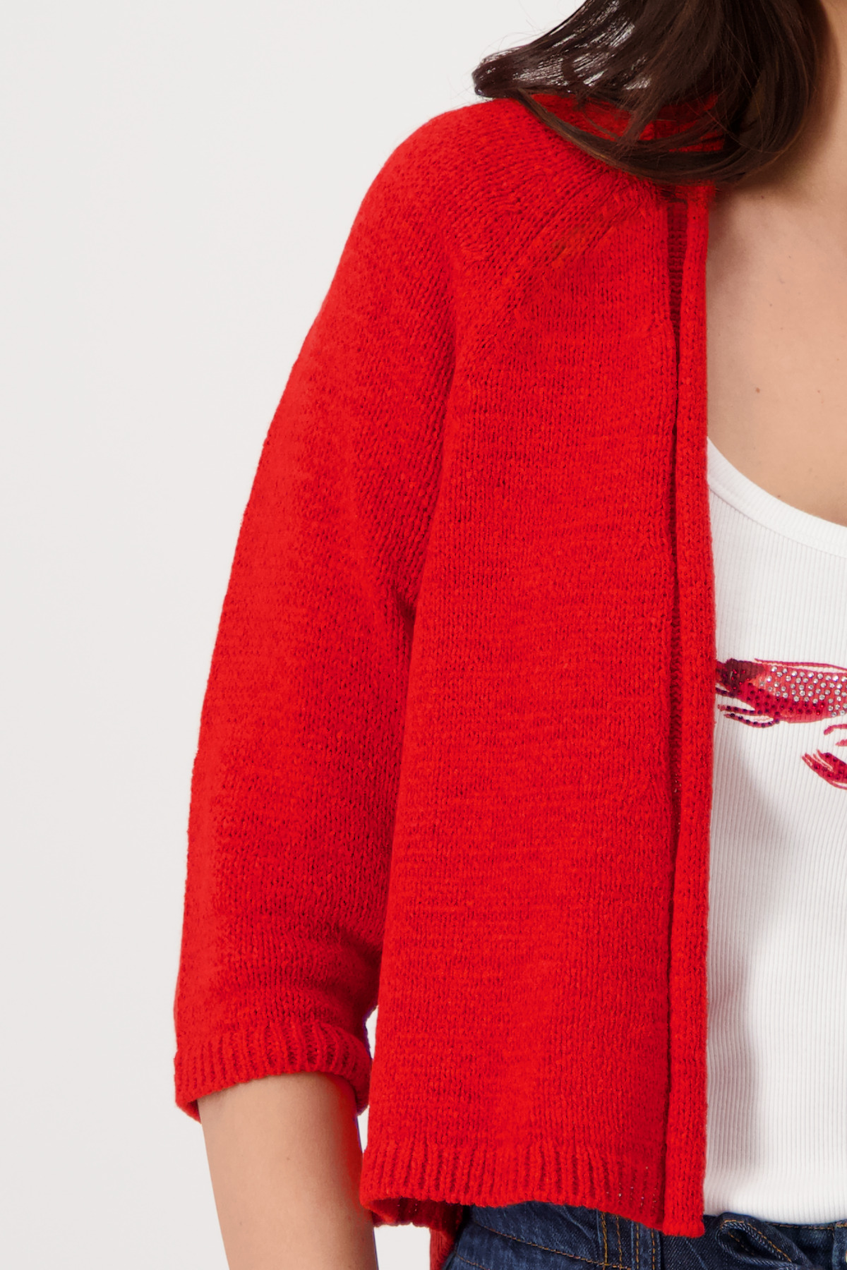 Dieser Stricküberwurf verleiht jedem Outfit eine gemütliche Note. Ohne Knöpfe und mit ¾-Raglanärmeln.