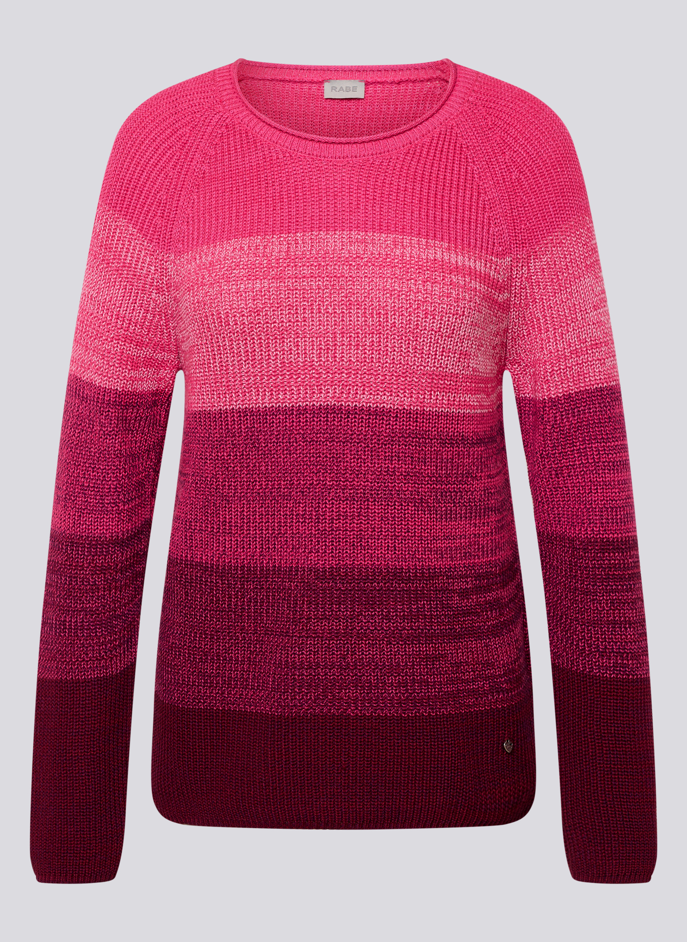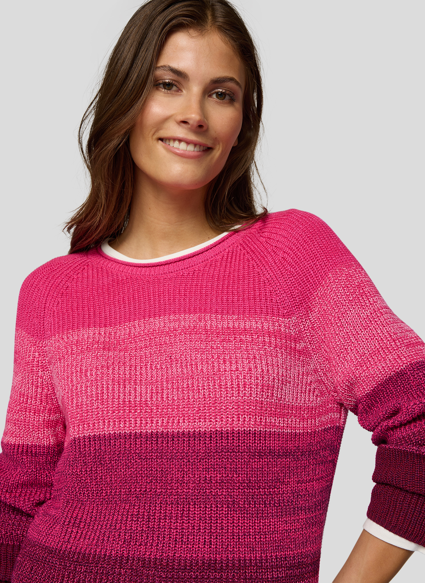 Dieser Pullover setzt auf Struktur und Verlauf: Ein sportlicher Rundhalsausschnitt und Raglanärmel treffen auf markante Strickstruktur mit modisch abgestuftem Farbverlauf. Die weiche Qualität mit hohem Baumwollanteil macht ihn pflegeleicht und angenehm zu tragen. Strukturstrick mit Farbverlauf. Rundhalsausschnitt. Raglanärmel. Bequeme Passform.