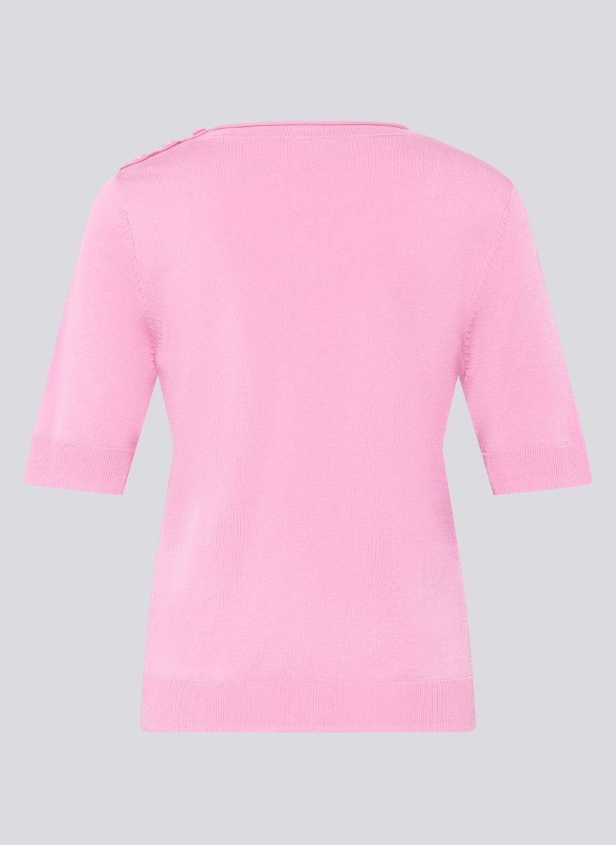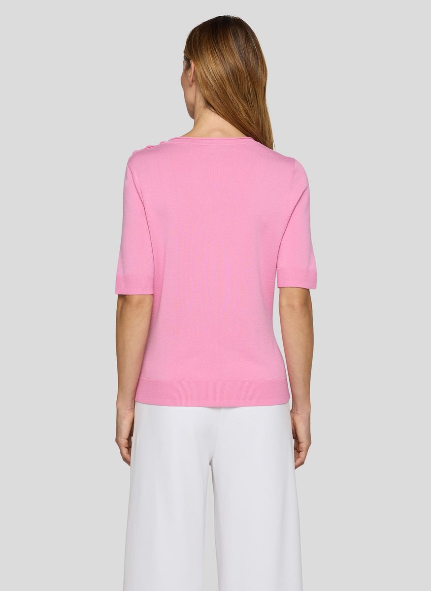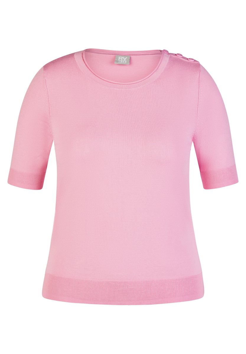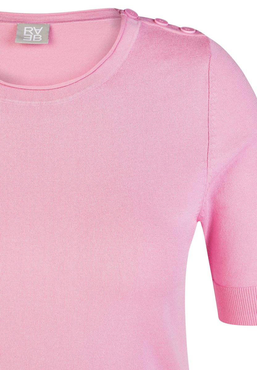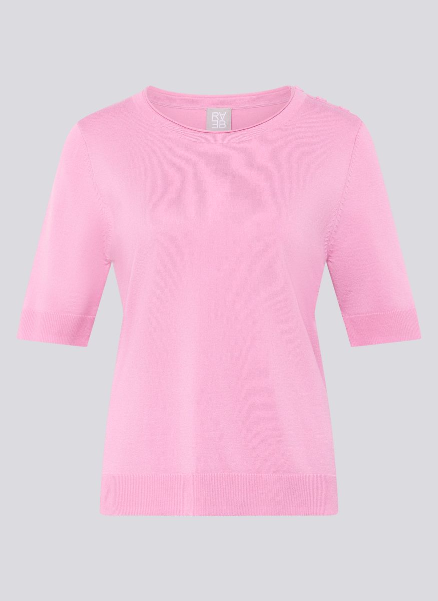 Dieses feminine Shirt aus feinem Strick überzeugt durch seine glatte, angenehm weiche Qualität mit Viskoseanteil. Das Material liegt geschmeidig auf der Haut, ist atmungsaktiv und sorgt für ein komfortables Tragegefühl. Der klassische Rundhalsausschnitt und die kurzen Ärmel machen das Modell vielseitig kombinierbar, während die dekorativen Knöpfe an der Schulter einen dezenten Akzent setzen. Ein unkompliziertes Basic für gepflegte Alltagslooks. Weicher Feinstrick mit Viskoseanteil. Rundhalsausschnitt. Kurze Ärmel. Dekorative Schulterknöpfe. Angenehm leicht und formstabil.