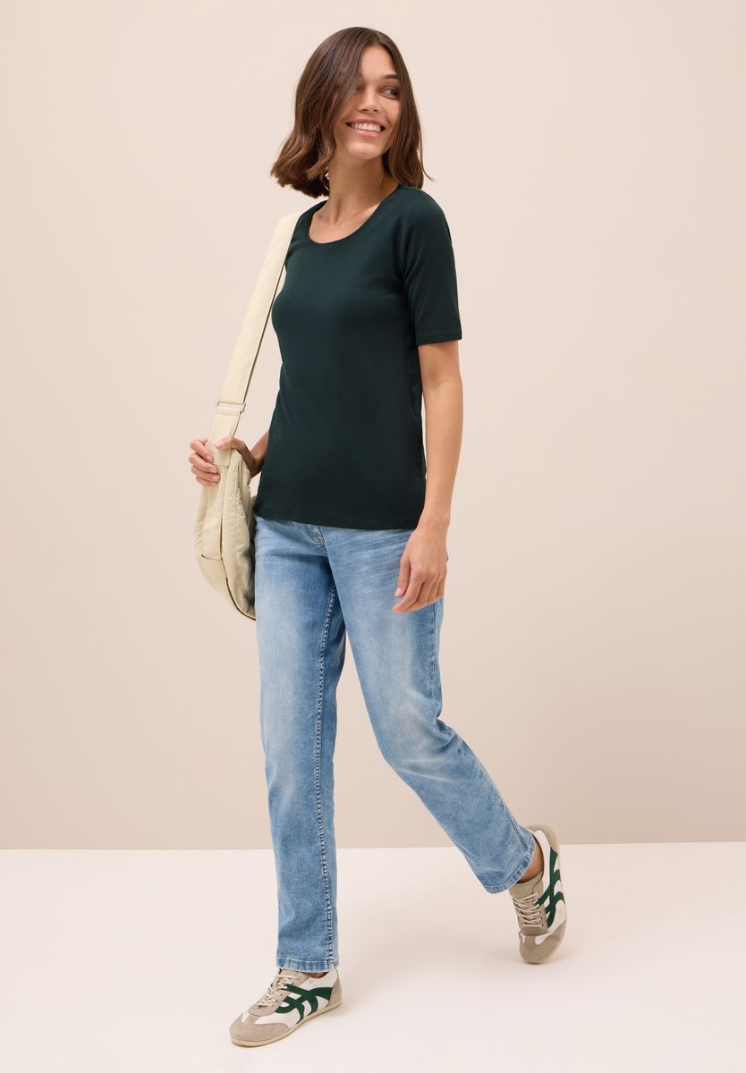 Basic Power! Feminines Damen T-Shirt im Style Lena von CECIL. Es zeigt sich mit Rundhalsausschnitt und in frischer Unifarbe. Ein neues Basic-Oberteil, das sich toll zum Kombinieren eignet. T-Shirt Rundhalsausschnitt Unifarbe Material: 100% Baumwolle