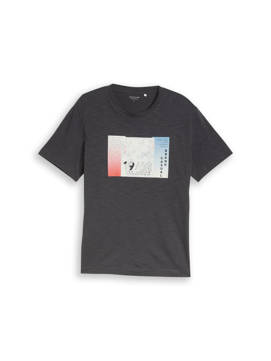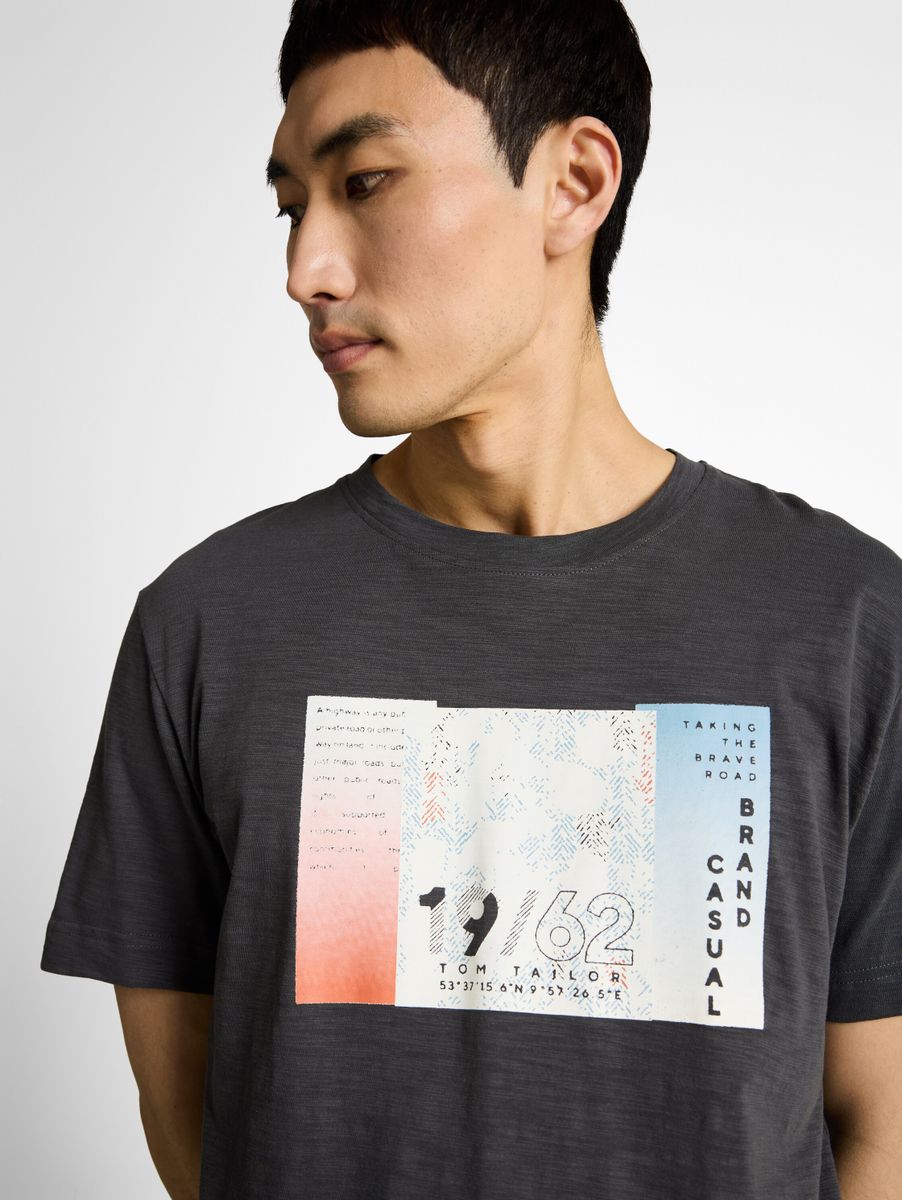 T-Shirt in Melange-Optik mit Print auf der Vorderseite. Aus einem Single-Jersey Stoff aus Baumwolle.