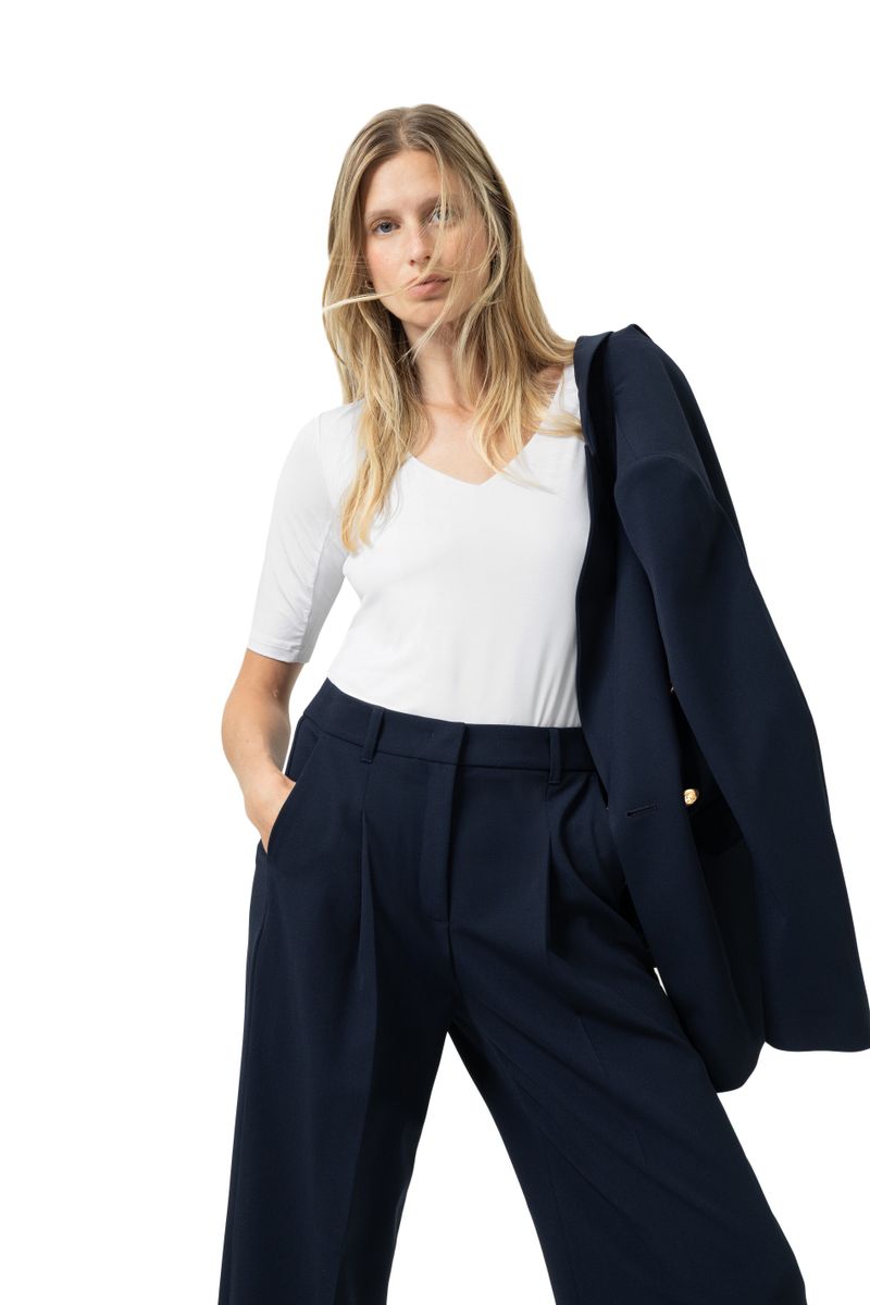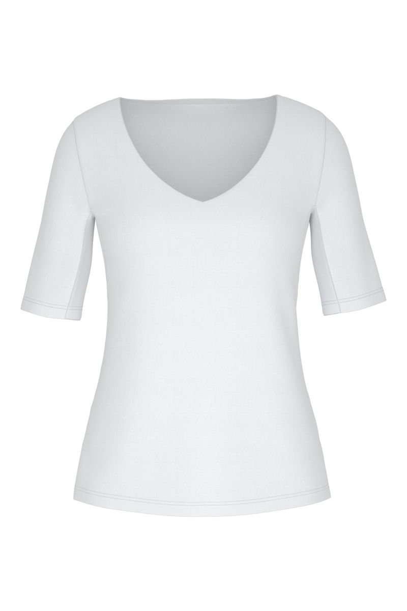 *mey Innovation*Puristisch & zeitlos*Enganliegende Passform*V-Ausschnitt*Längere enganliegende Ärmel*Blickdicht: Doppellagige Vorderseite*Hochfunktionelle Patch-Konstruktion im Achselbereich*Anti Achselschweiß*Schnell trocknendes Material*Must-have für Business-Frauen