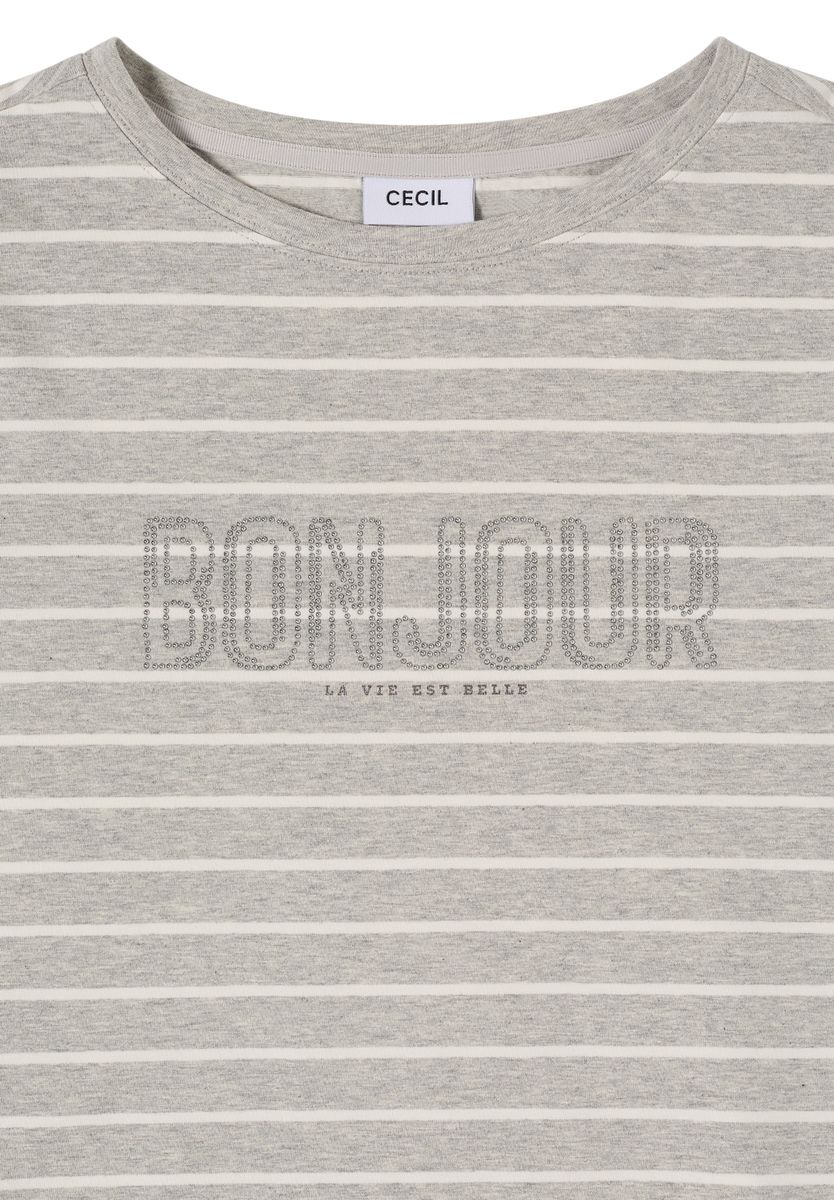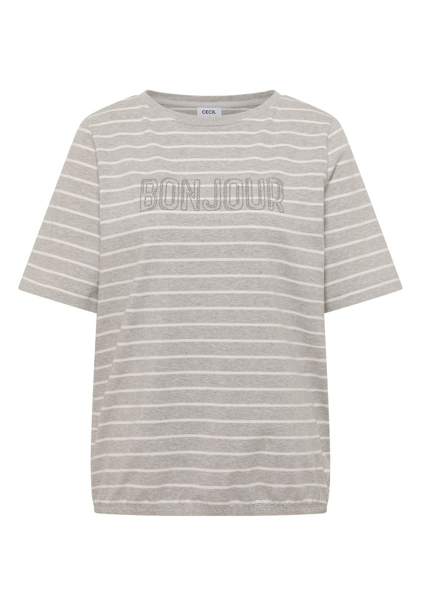 Das Streifen-Shirt von CECIL für Damen überzeugt mit sportivem Charme und angenehmem Tragegefühl. Der U-Boot-Ausschnitt und der dezente Wording-Print setzen moderne Akzente. Dank Baumwollqualität mit Stretchanteil sitzt das Jersey T-Shirt bequem im Alltag. Ideal für lässige Casual-Looks. Jersey T-Shirt Casual U-Boot-Ausschnitt Kurzarm Angenehm zu tragen Material: 95% Baumwolle, 5% Elasthan