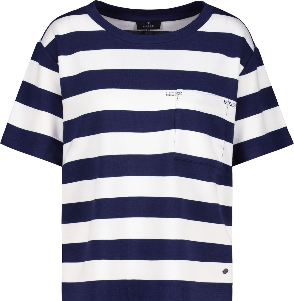 Das Sweatshirt aus fließender Viskose besticht durch sein elastisches Material und das trendige Ringelmuster. Die Brusttasche mit Schmuck verleiht dem Sweatshirt das gewisse Extra.