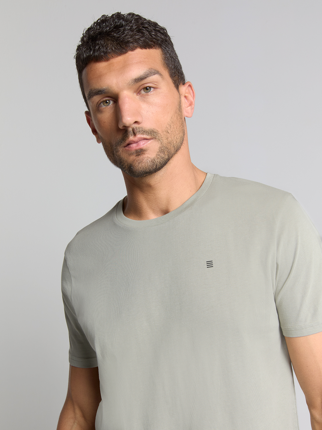 Ein cleanes und zeitloses Crewneck T-Shirt, das in jede Garderobe passt. Aus weicher Baumwolle mit bequemem Schnitt und dezentem Logo auf der Brust. Ideal als Basic für jeden Tag, leicht zu kombinieren und immer passend.