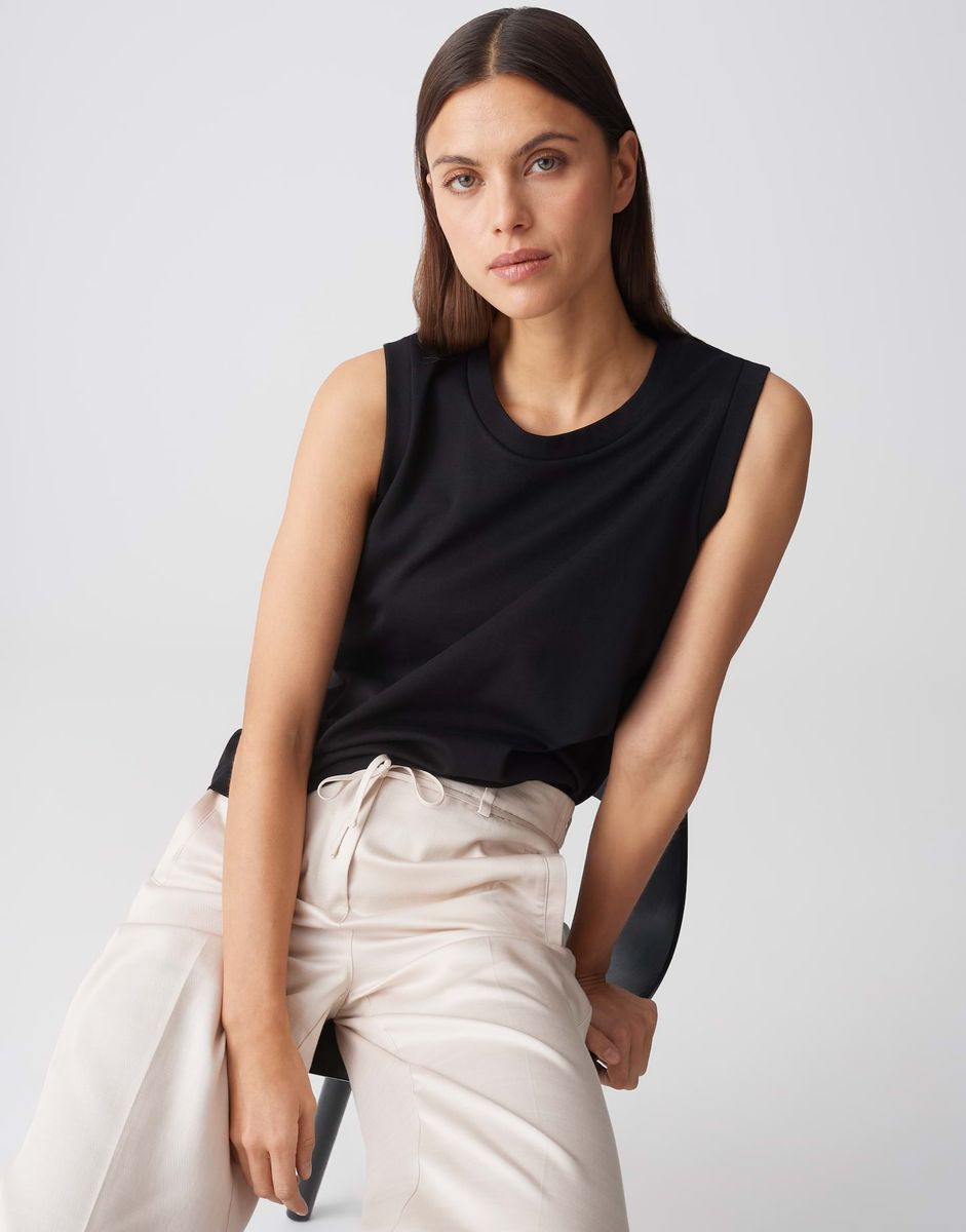 lockere Passform, Nullarm, Rundhalsausschnitt, Rückenlänge ca. 58 cm bei Größe 36, Model Größe 179 cm – trägt Größe 36, BCI Cotton, weicher Griff, elastischer Stoff, Jersey, breite Träger