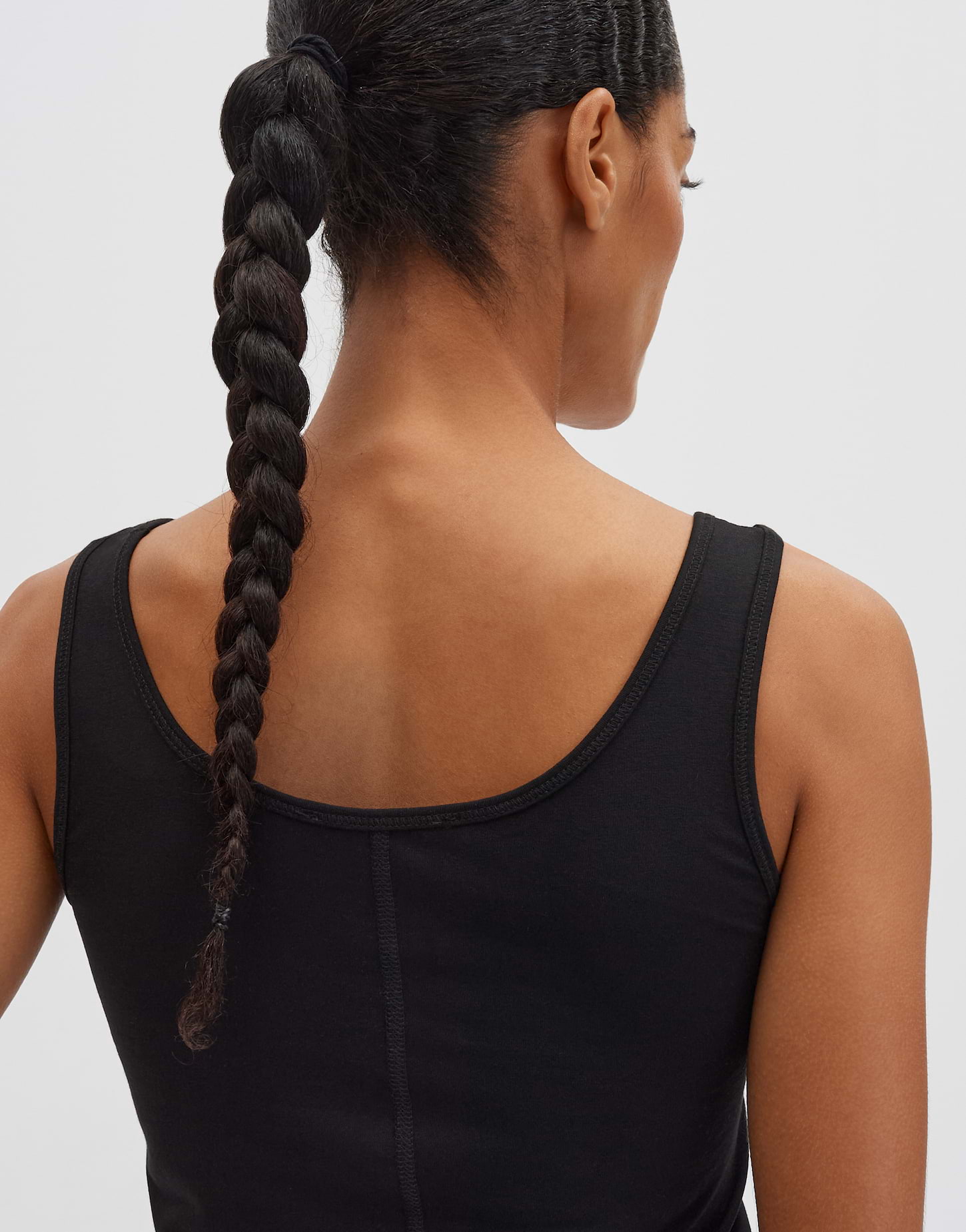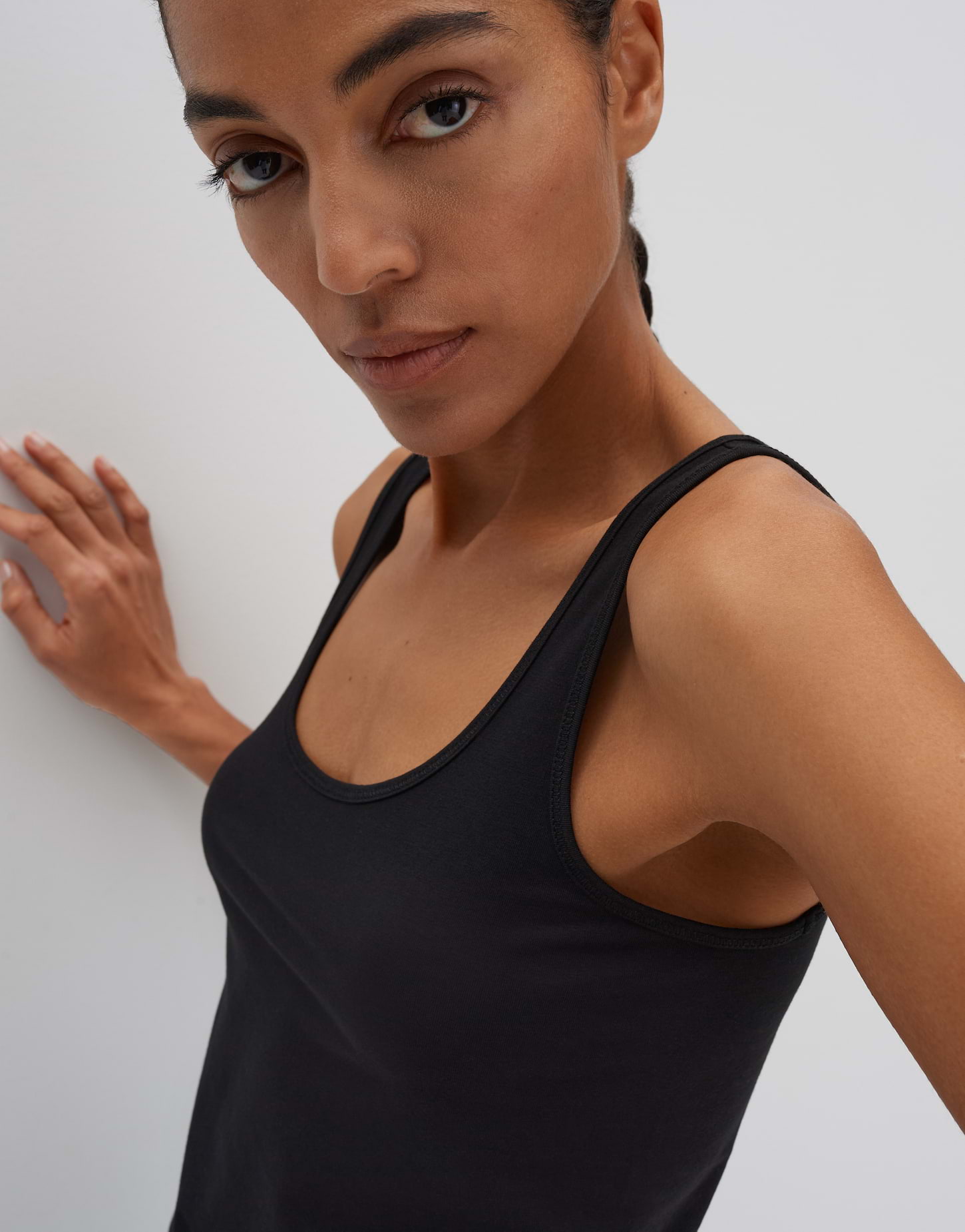 schmale Passform, figurbetont geschnitten, normale Länge, ärmellos, Rundhalsausschnitt, Rückenlänge ca. 62 cm bei Größe 36, BCI Cotton Mix, Jersey, weicher Griff, elastischer Stoff, Längsnaht hinten